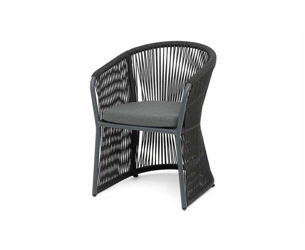 "Романо" стул плетеный из роупа, каркас алюминий темно-серый (RAL7024) муар, роуп темно-серый круглый, ткань темно-серая 027