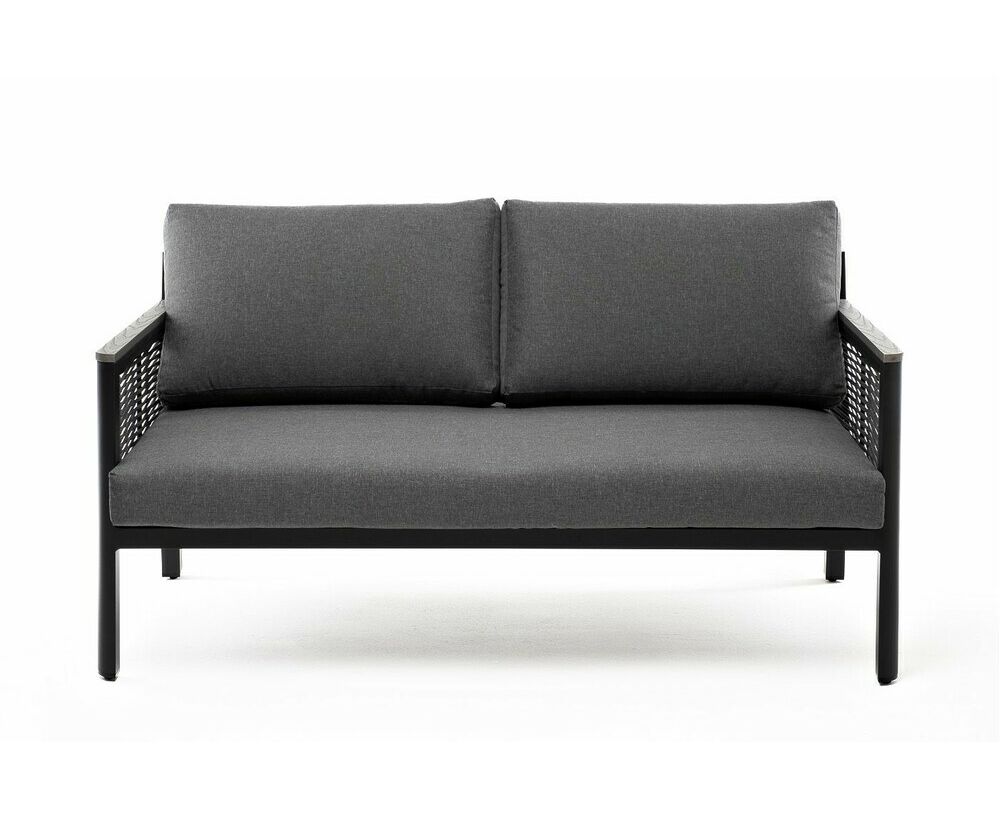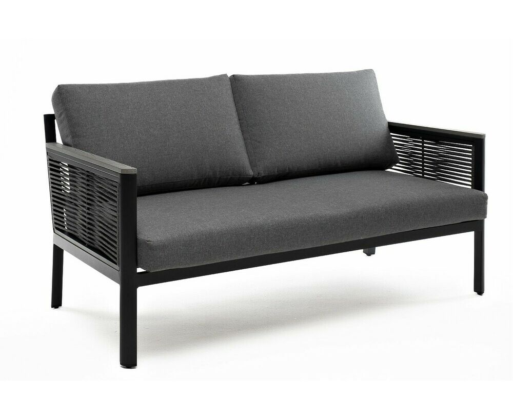 "Сан Ремо" диван 2-местный плетеный из роупа, каркас алюминий темно-серый, роуп серый, ткань серая
