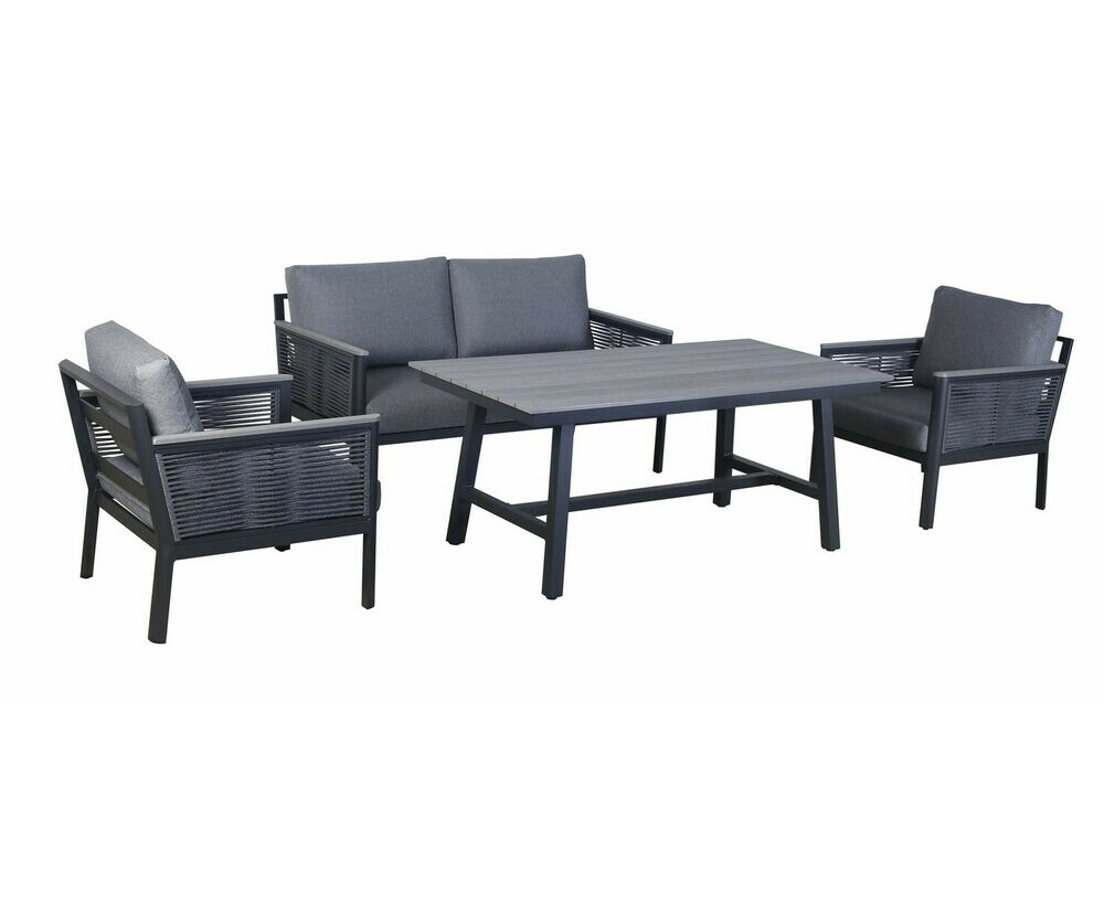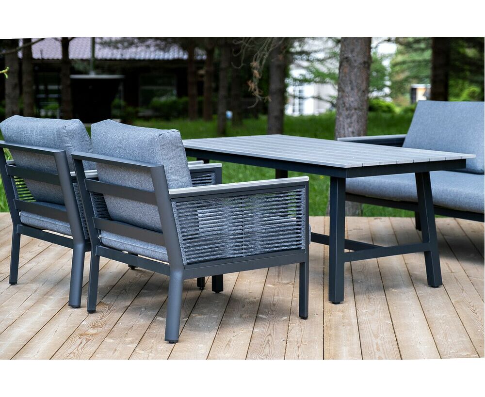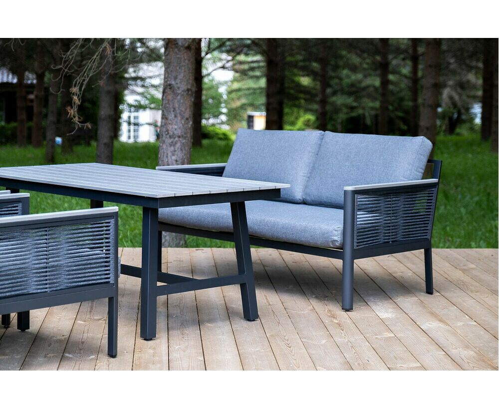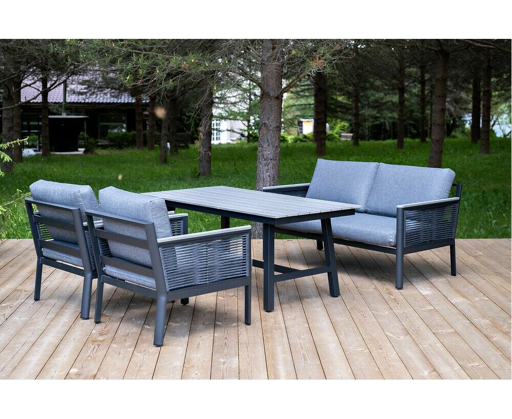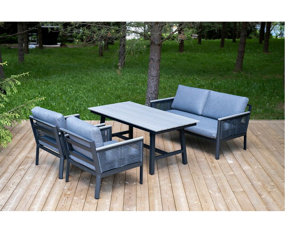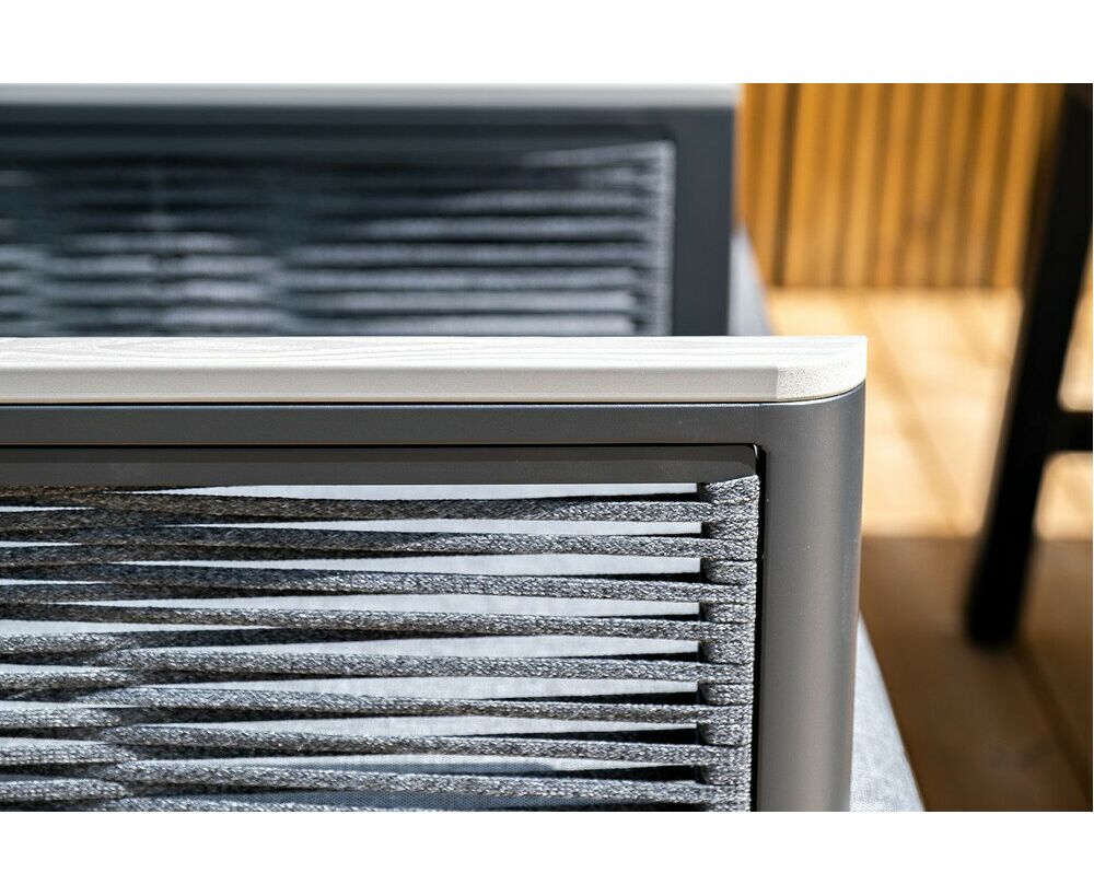 "Сан Ремо" лаунж-зона, алюминиевый каркас серый цвета, вручную оплетенный роупом серого цвета.