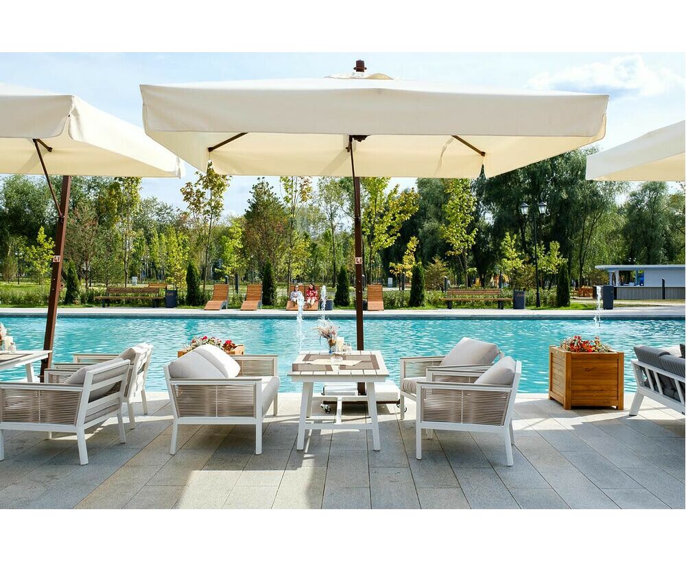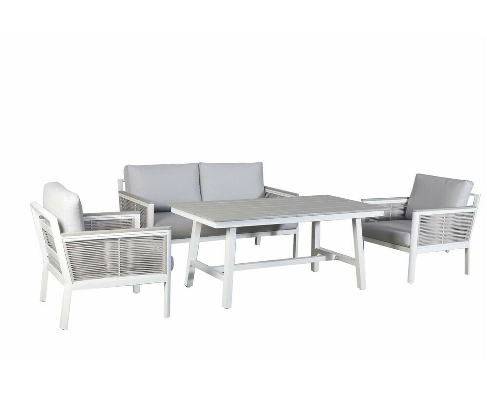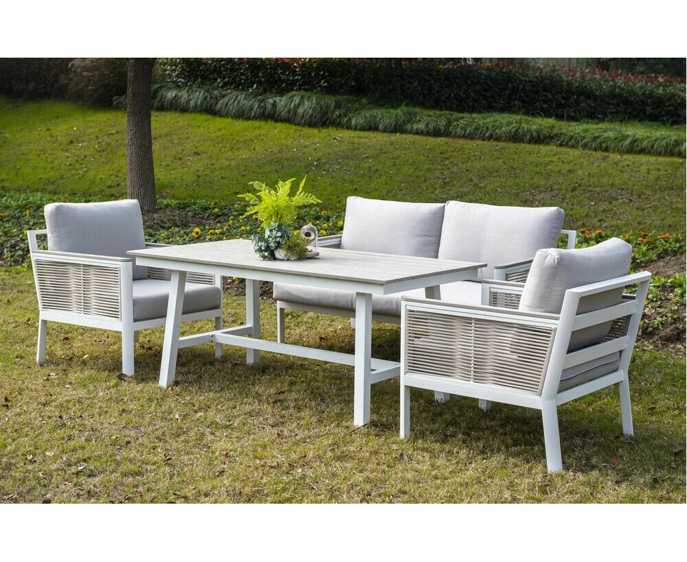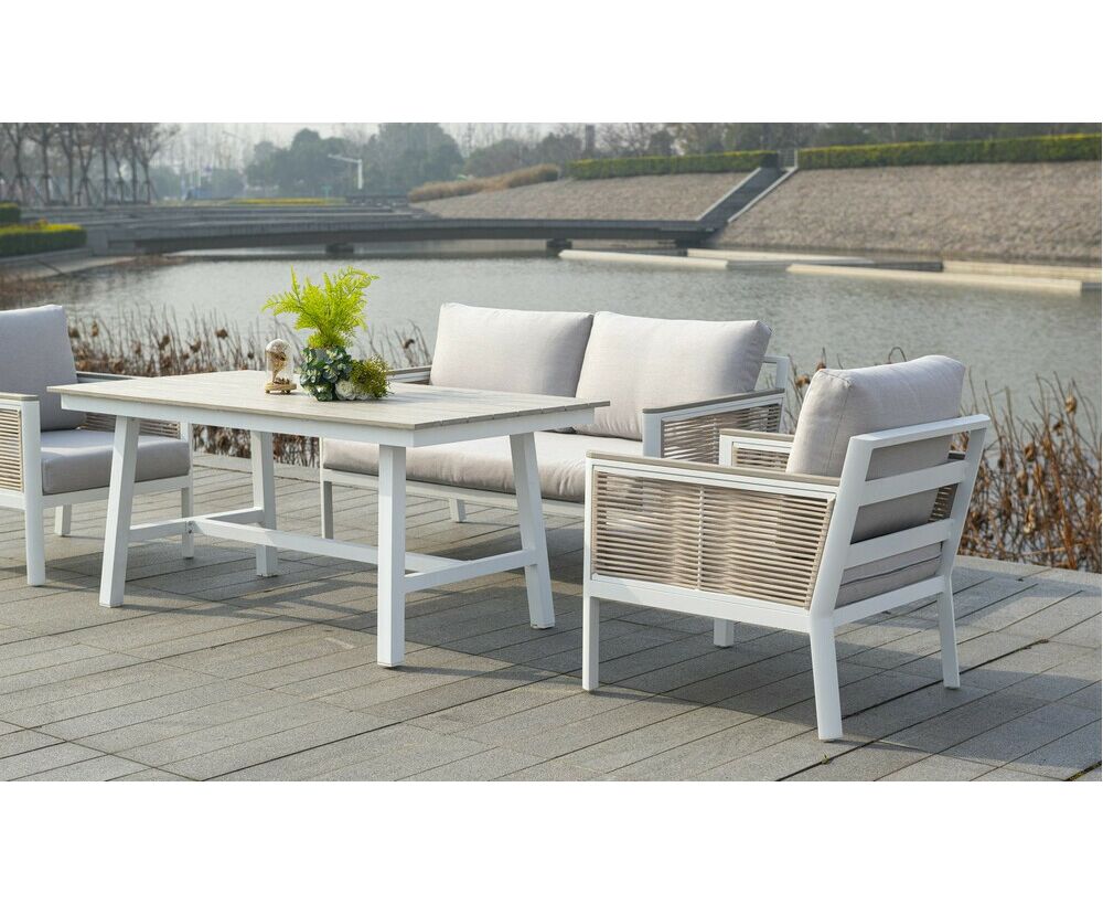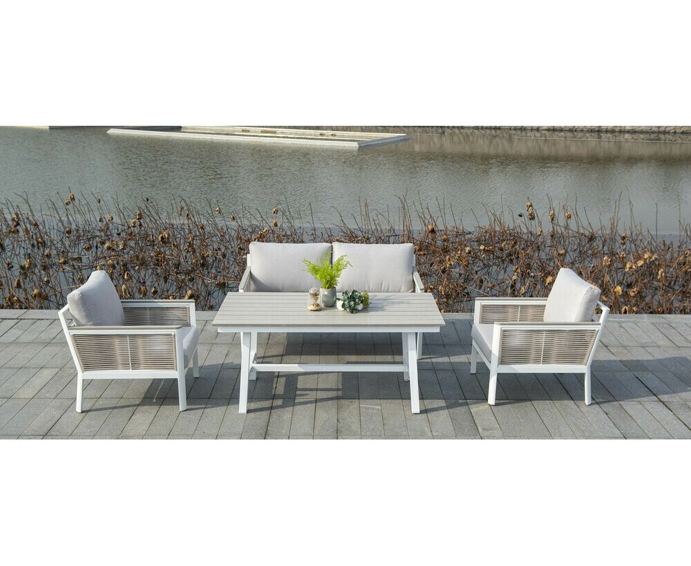 "Сан Ремо" лаунж-зона, алюминиевый каркас белого цвета, вручную оплетенный роупом серо-коричневого цвета.