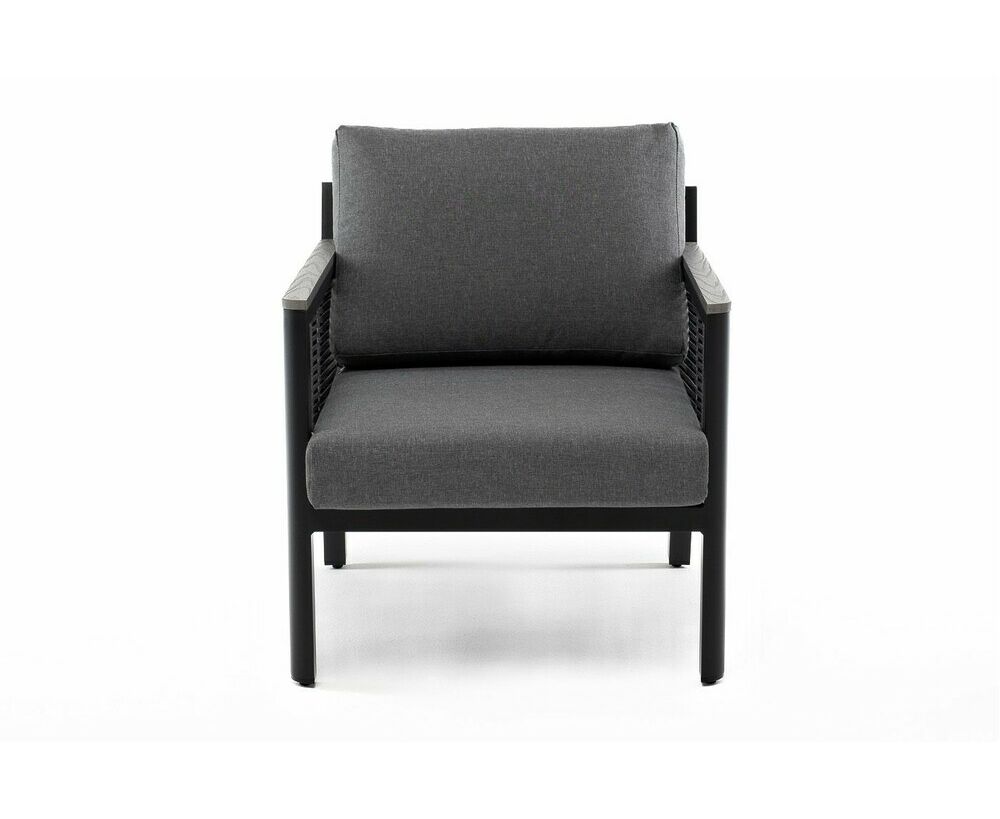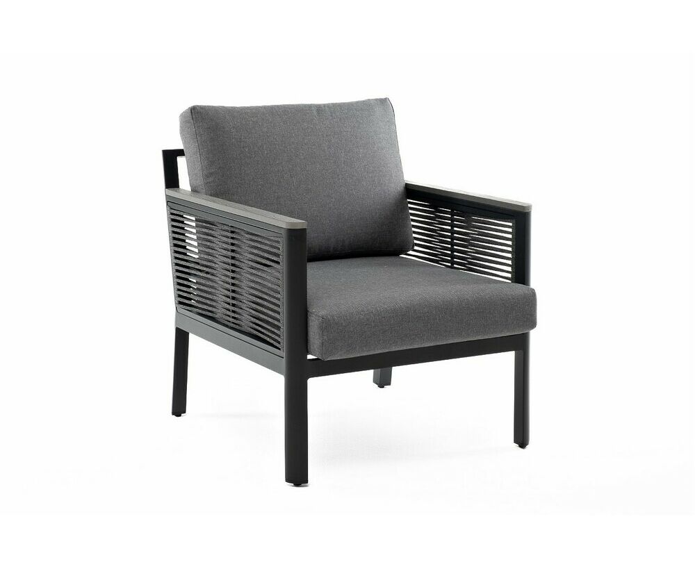 "Сан Ремо" кресло плетеное из роупа садовое, каркас алюминий темно-серый, роуп серый, ткань серая