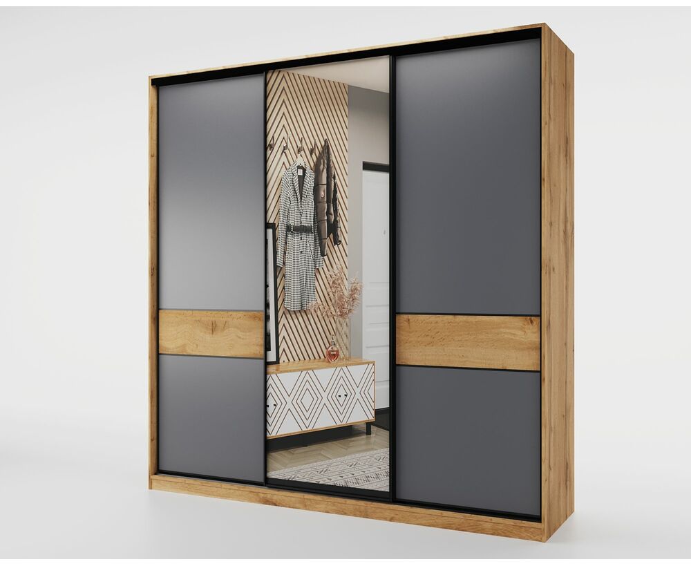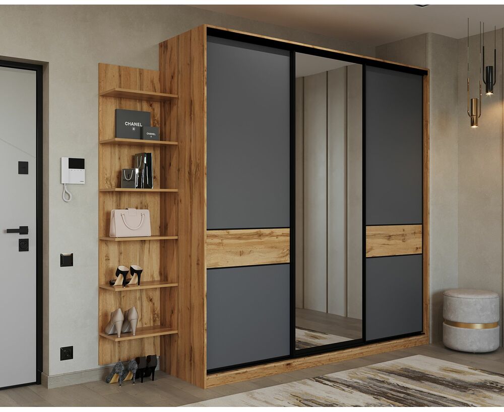Шкаф-купе SLIM,184*60, Дуб вотан, Серый с зеркалом