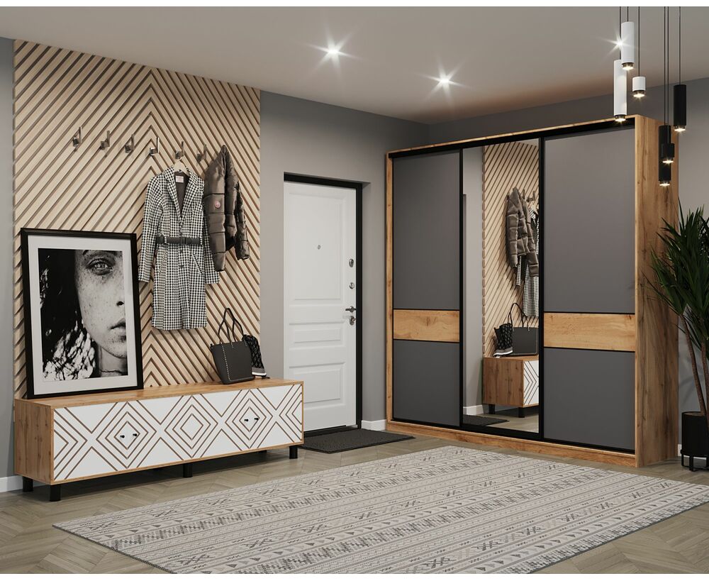 Модная комбинация элегантного темного-серого цвета с природным оттенком Дуба Вотан точно очарует ваших гостей и понравится домочадцам!