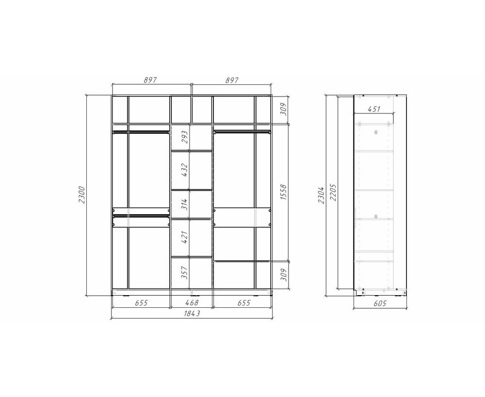Белое наполнение внутри шкафа поможет быстро найти вещи и поддерживать чистоту. А для полного порядка к шкафу можно заказать комплект из 2-х ящиков, для хранения мелких вещей, косметики и документов!
