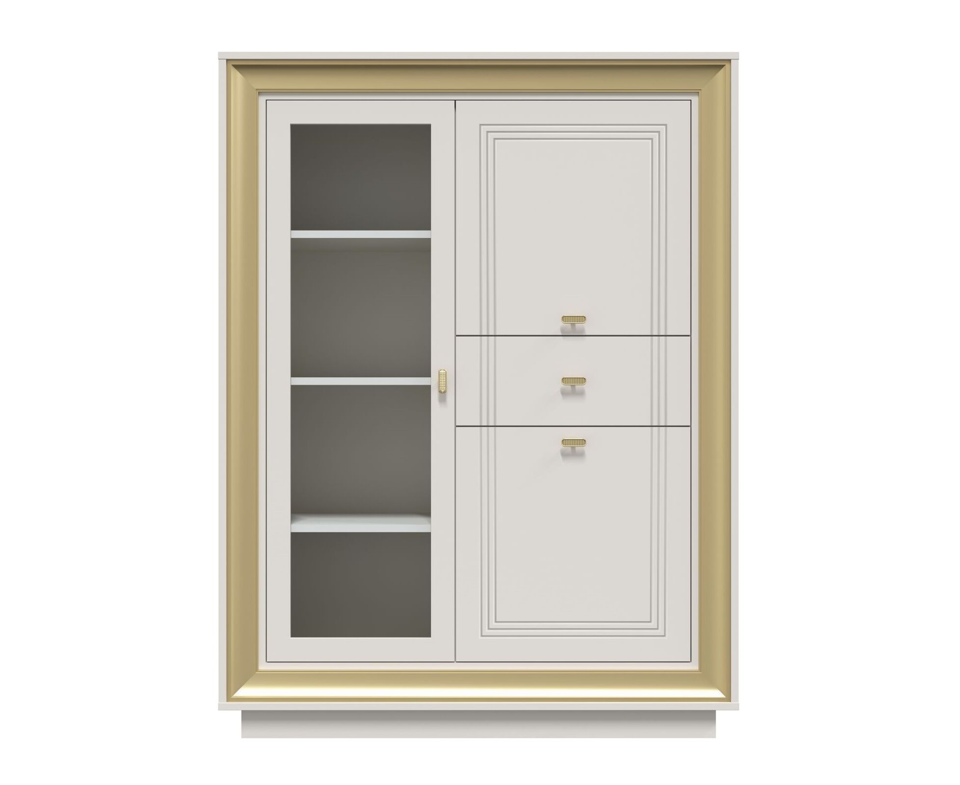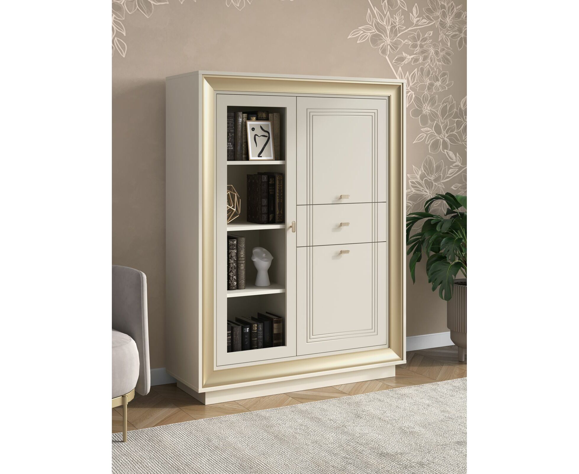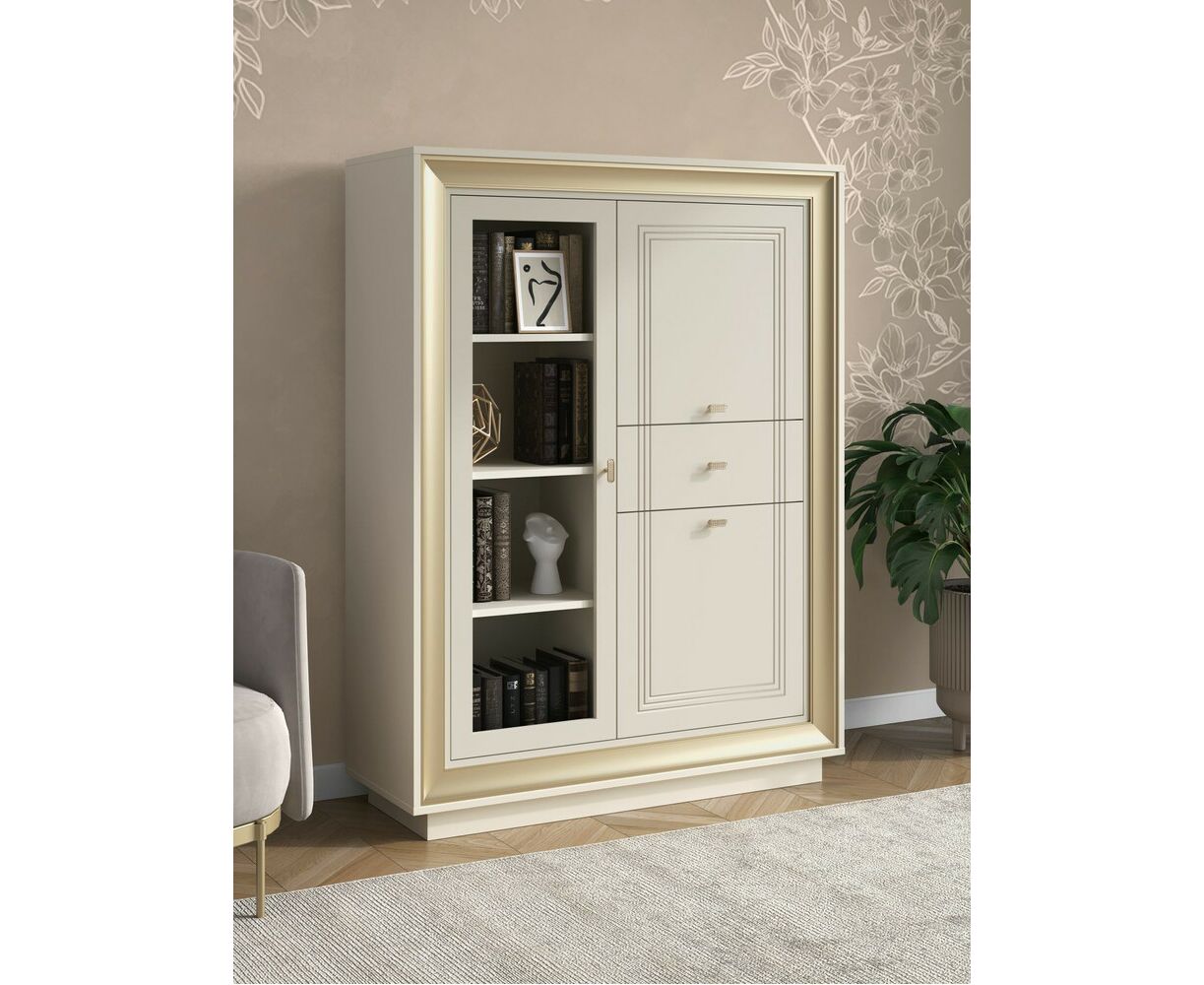 Шкаф с витриной «Прато» низкий, зефир/миндаль