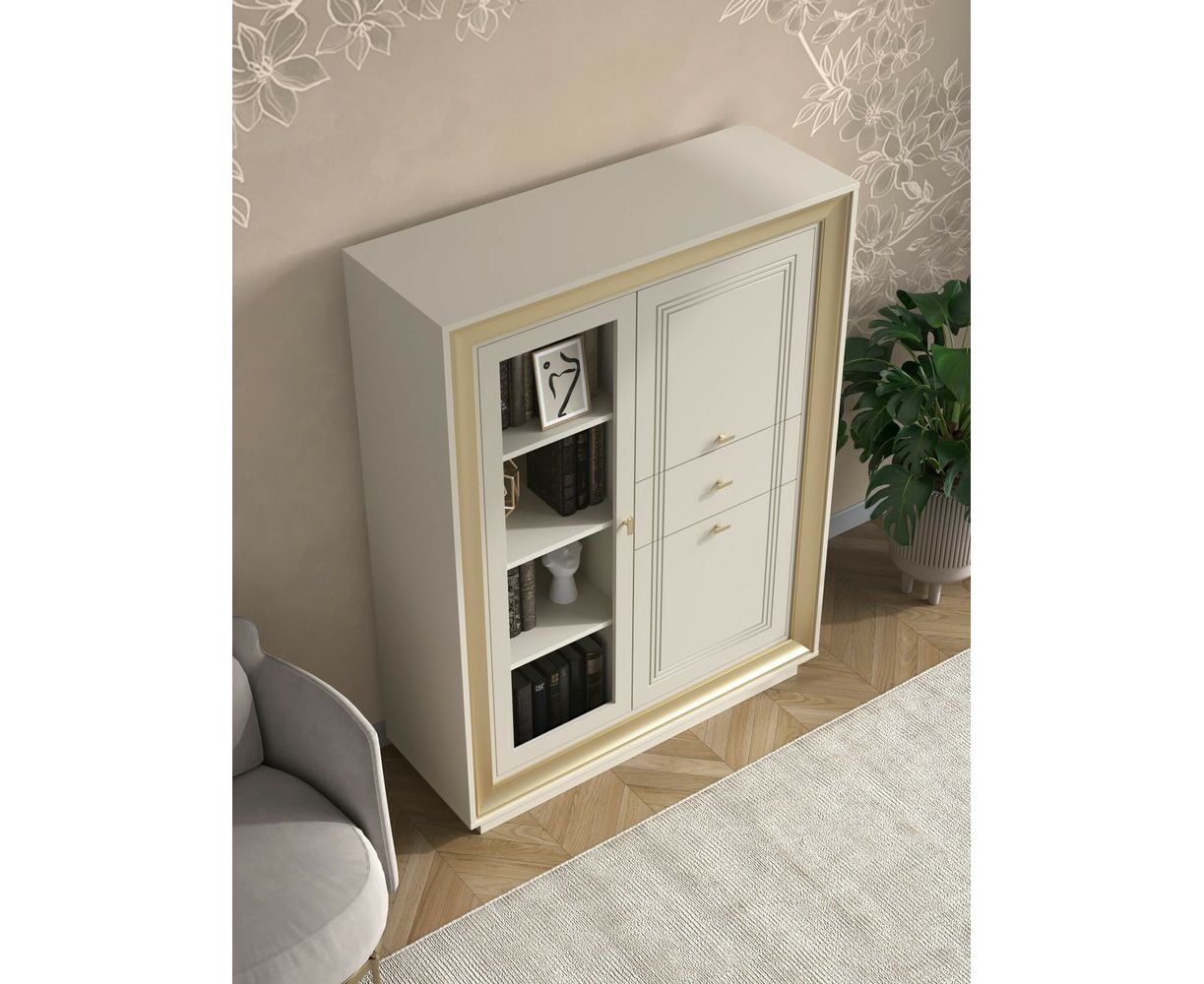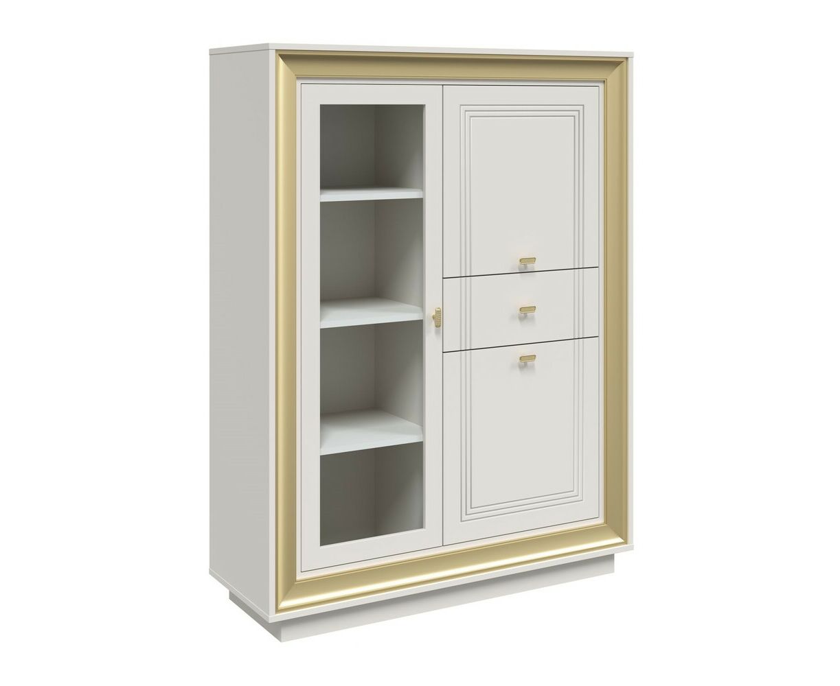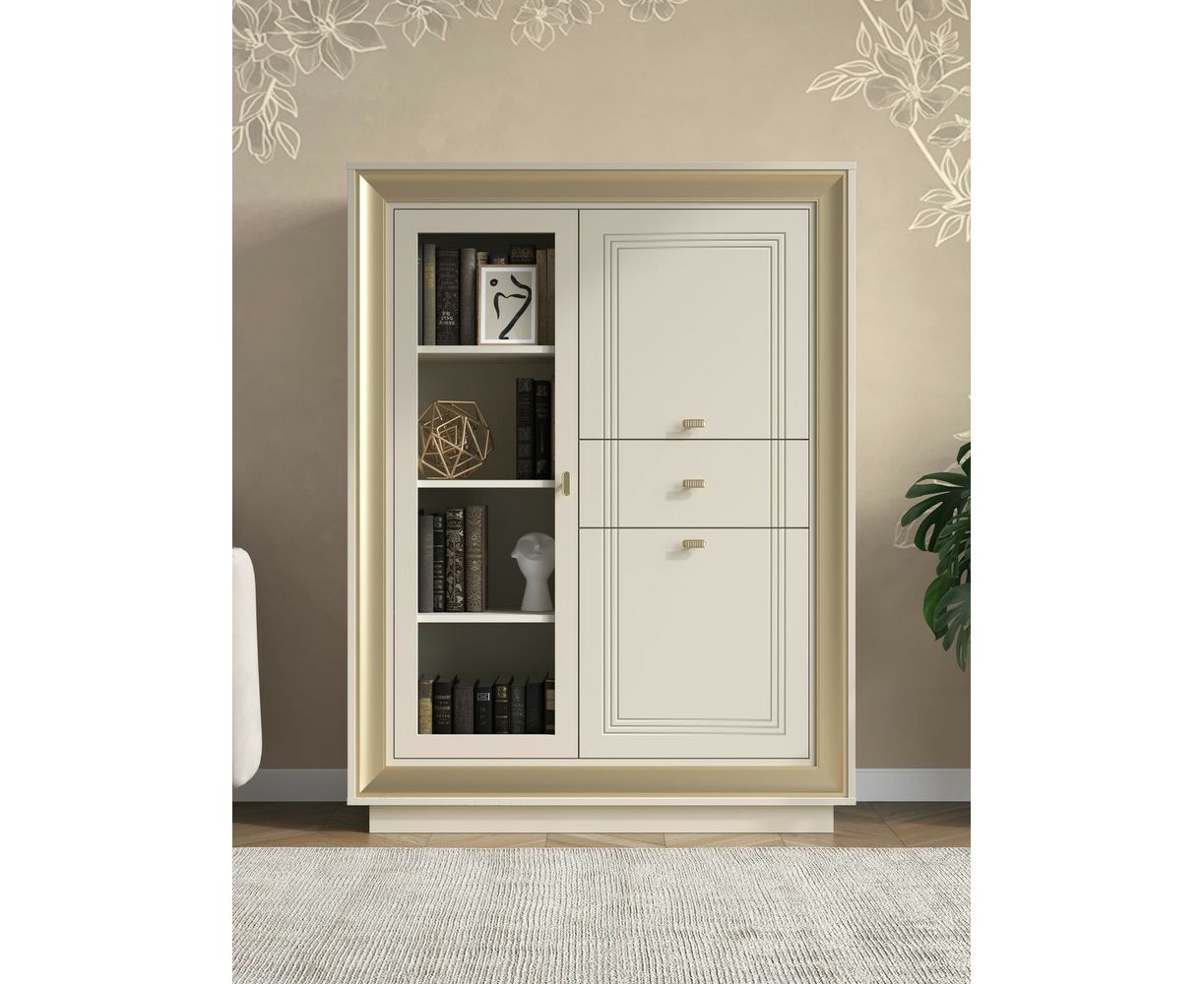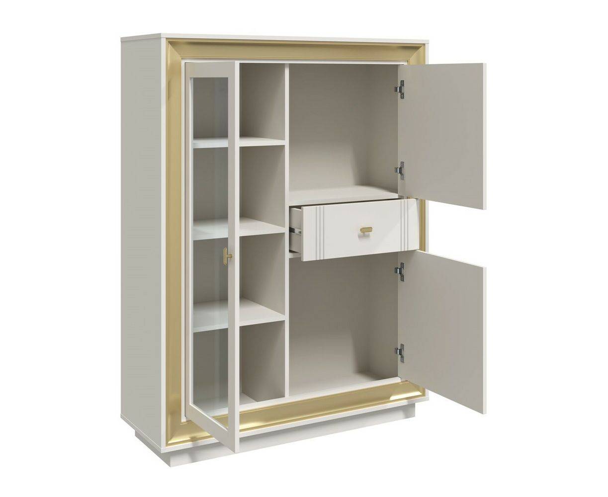 Шкаф с витриной «Прато» низкий, зефир/миндаль