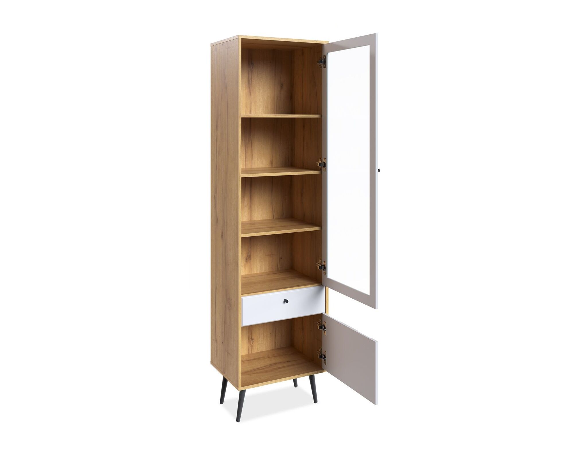 Витрину со стеклом отличает вместительность и функциональность. Дверка со стеклом создает открытое пространство для хранения и демонстрации красивых предметов, а закрытое отделение и ящик позволят разместить различные бытовые мелочи и предметы обихода. Для вашего комфорта, двери оснащены доводчиком для плавного закрывания. Высота металлических опор: 20 см, что делает образ мебели легким и грациозным, а также обеспечивает легкую уборку.