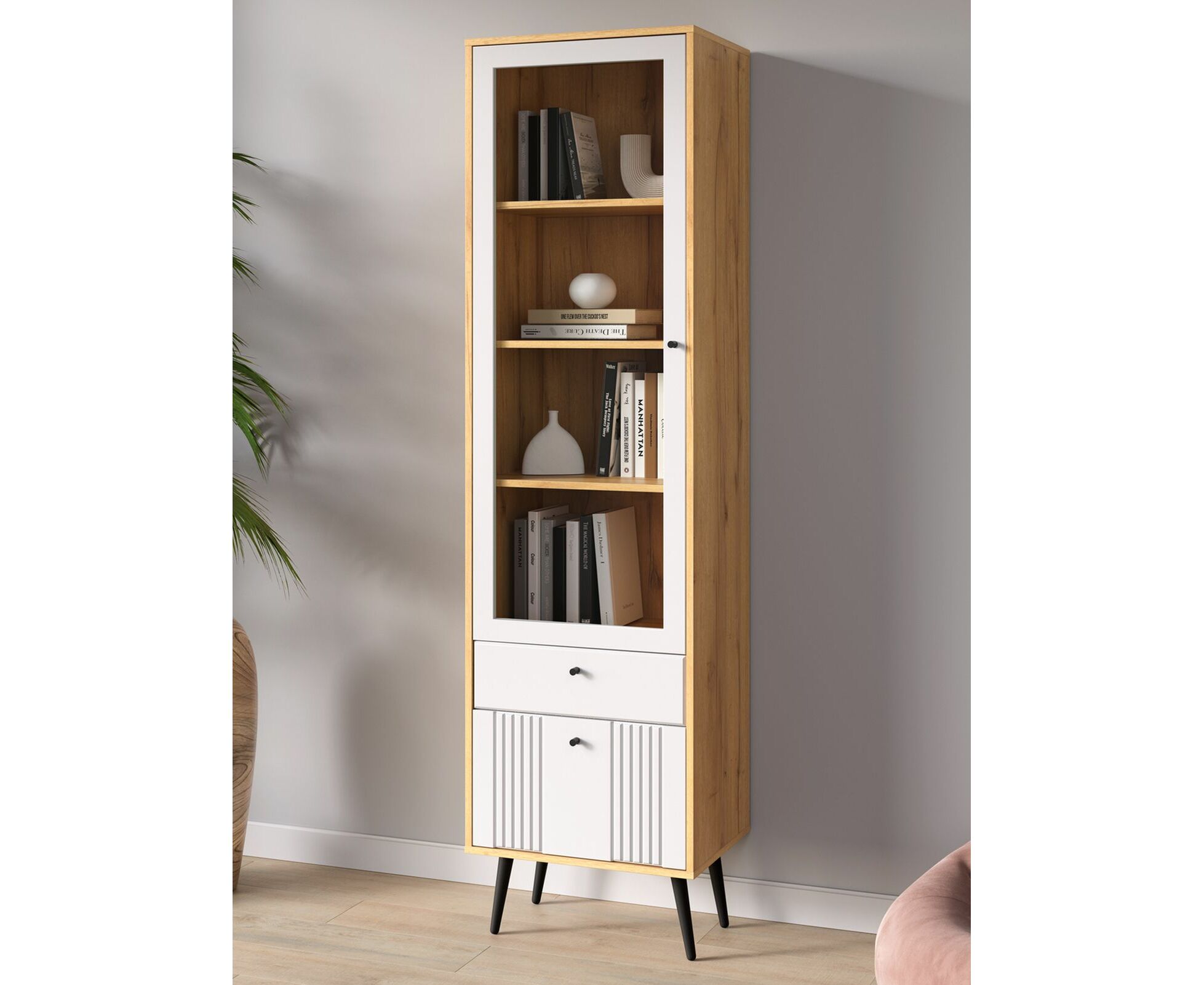 Шкаф-витрина «Вега Саксония» - стильный выбор для современного дома. Сочетание сдержанного декора в виде вертикальных полос, корпуса в природном древесном оттенке «дуб крафт золотой» и миниатюрной фурнитуры делают этот сервант идеальным для интерьера в стиле минимализм, современном или скандинавском стиле.