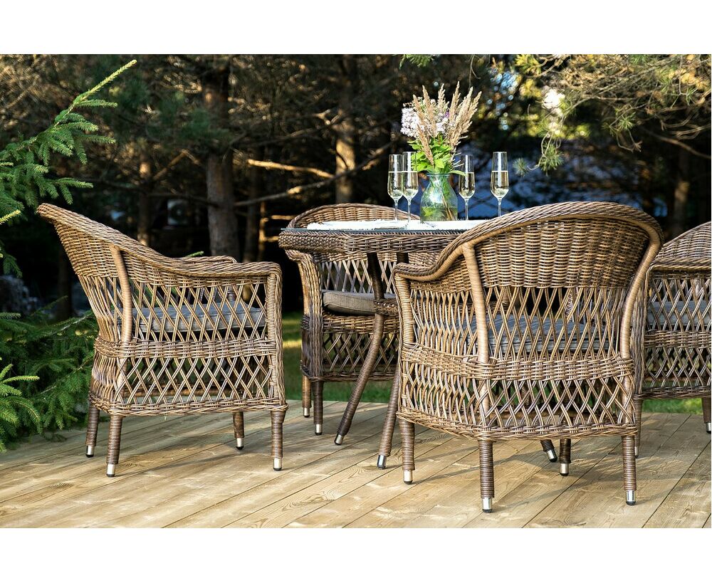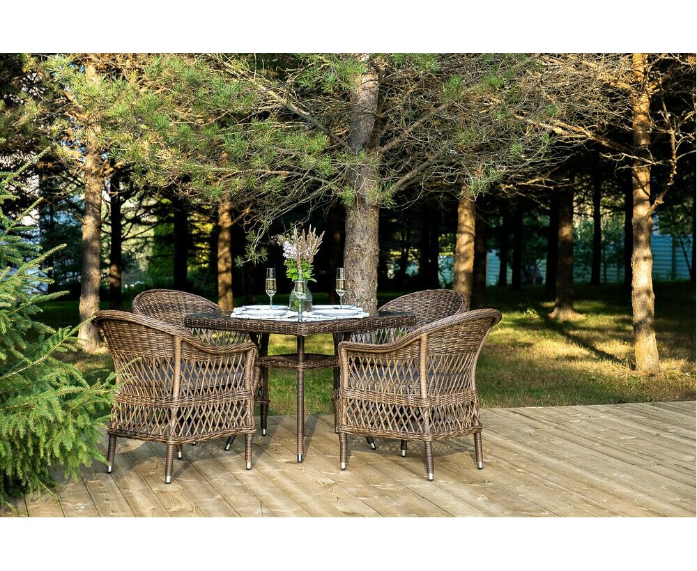 "Айриш" стол плетеный из искусственного ротанга, цвет коричневый 1шт. 900Х900Х750, "Сицилия" плетеный стул из искусственного ротанга, цвет коричневый 4шт. 590Х640Х820,