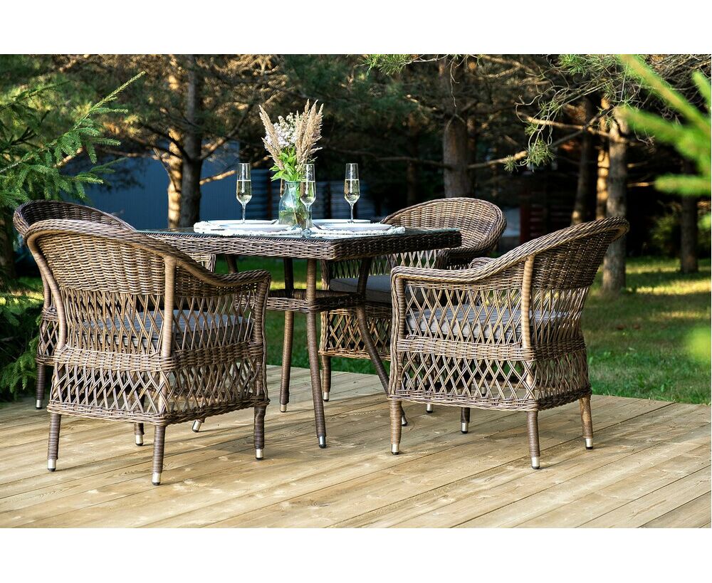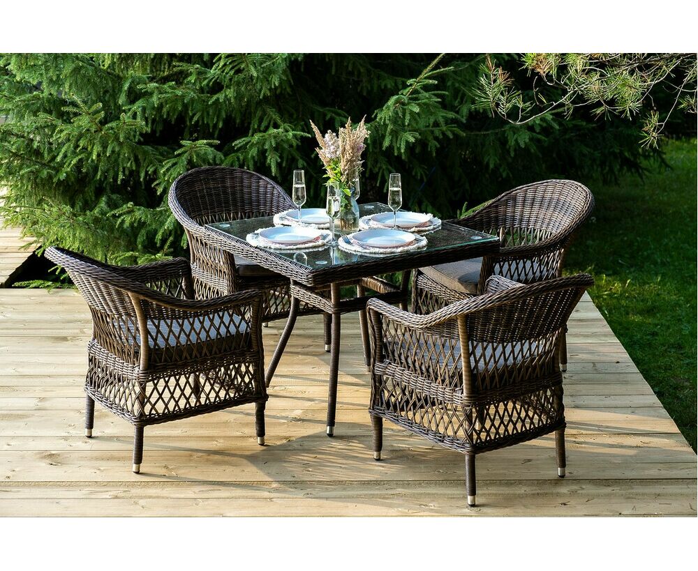 Комплект «Сицилия» - это обеденная группа из искусственного ротанга, которая рассчитана на 4 персоны.