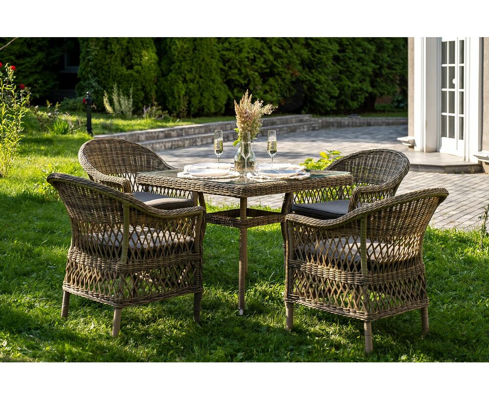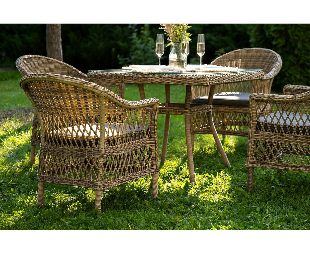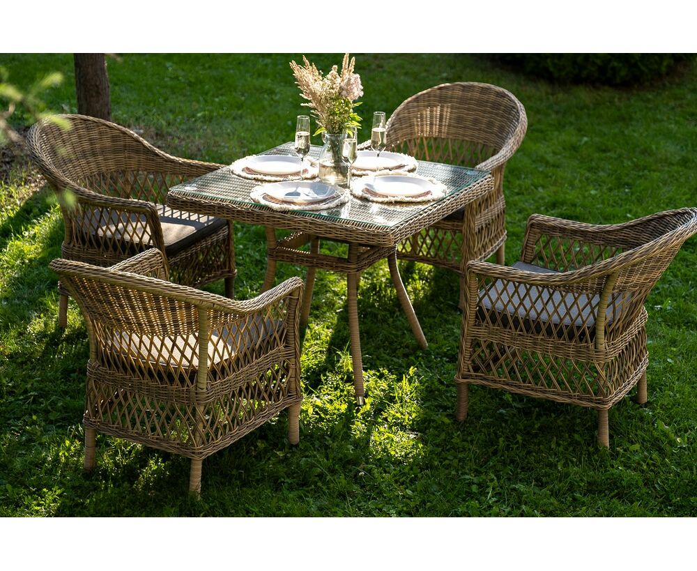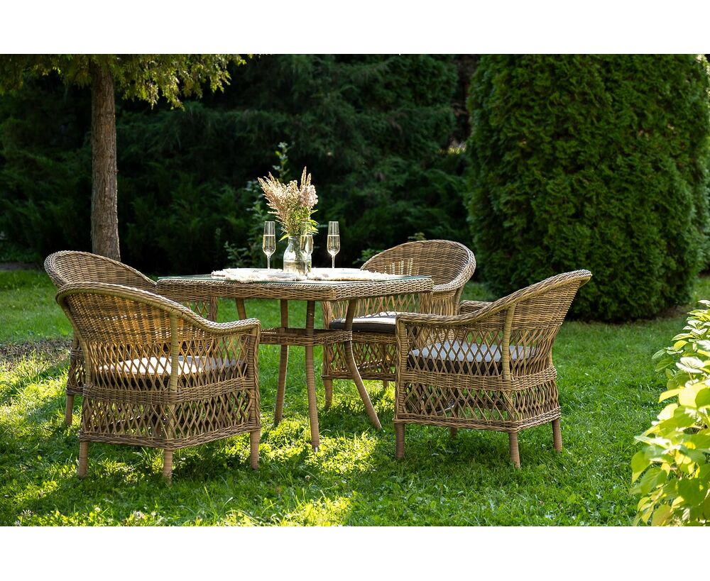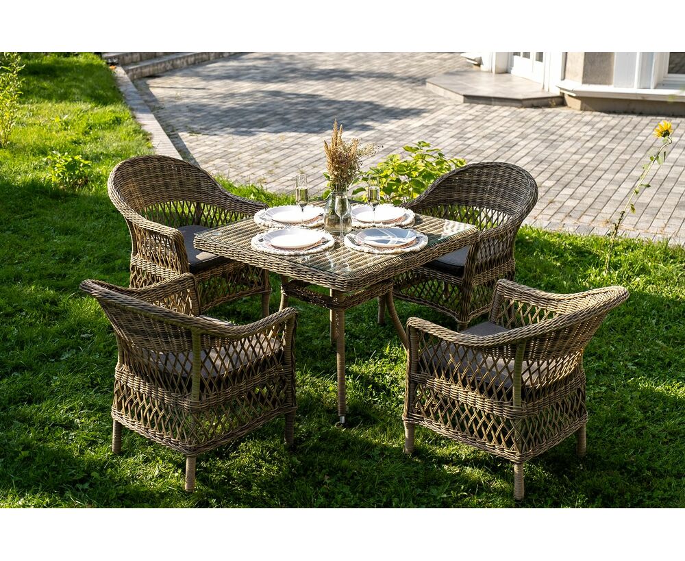 Комплект «Сицилия» - это обеденная группа из искусственного ротанга, которая рассчитана на 4 персоны.