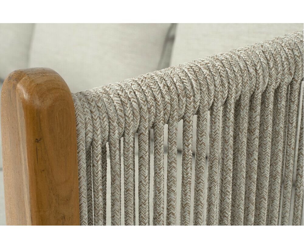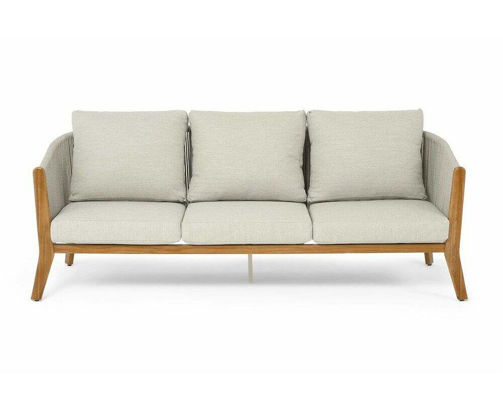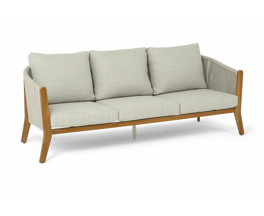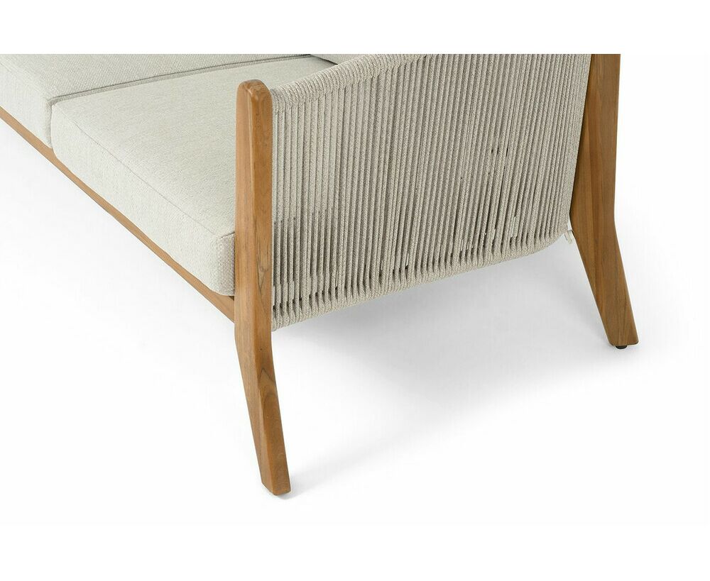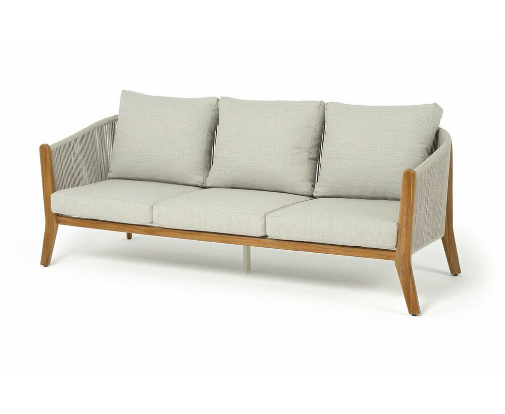 "Сидней" диван 3-местный плетеный из роупа, основание тик, каркас алюминий бежевый, роуп бежевый, ткань бежевая