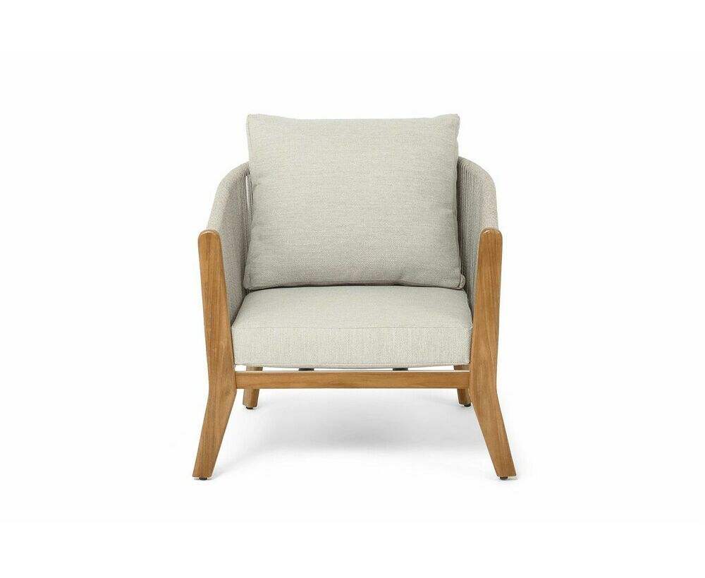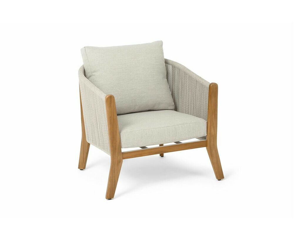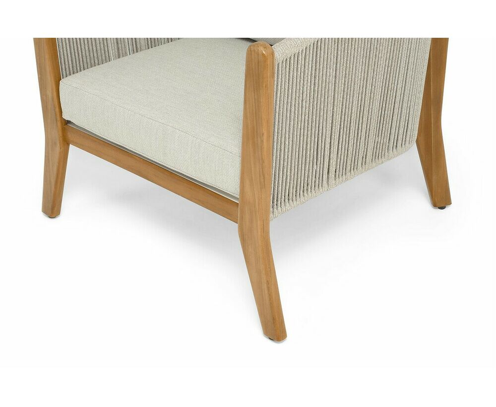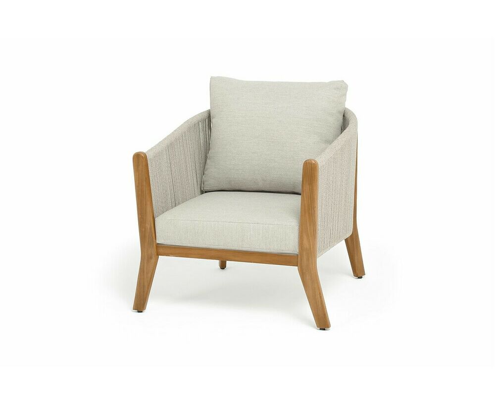 "Сидней" кресло плетеное из роупа, основание тик, каркас алюминий бежевый, роуп бежевый, ткань бежевая