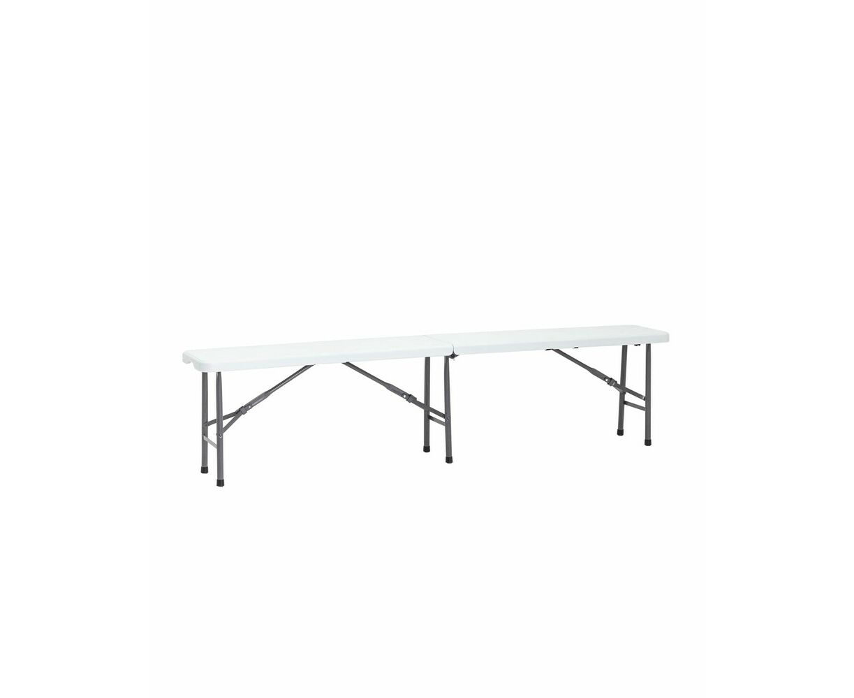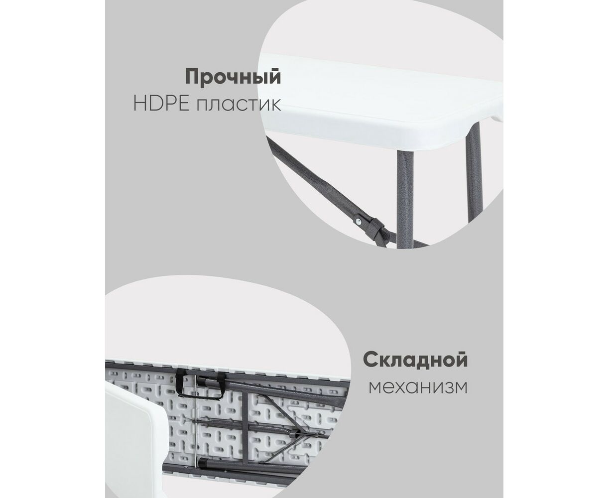 В числе преимуществ модели – компактная и удобная конструкция. В сложенном виде скамейка занимает минимум места, благодаря чему можно без проблем перевезти несколько штук даже на легковом транспорте. Для каркаса используется стальная труба особой прочности, а сиденье выполнено из 100% не переработанного полиэтилена HDPE (полиэтилен высокой плотности). Считается одним из более безопасных видов пластика. HDPE пластик выдерживает высокие нагрузки, не трескается при ударной нагрузке, эластичен в диапазоне температур от –70 до +100 °С.