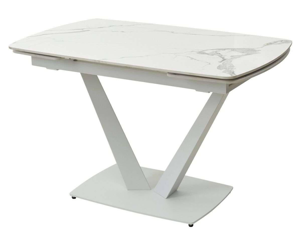 Стол ALATRI 120 с глянцевой керамической столешницей белый мрамор на белом каркасе