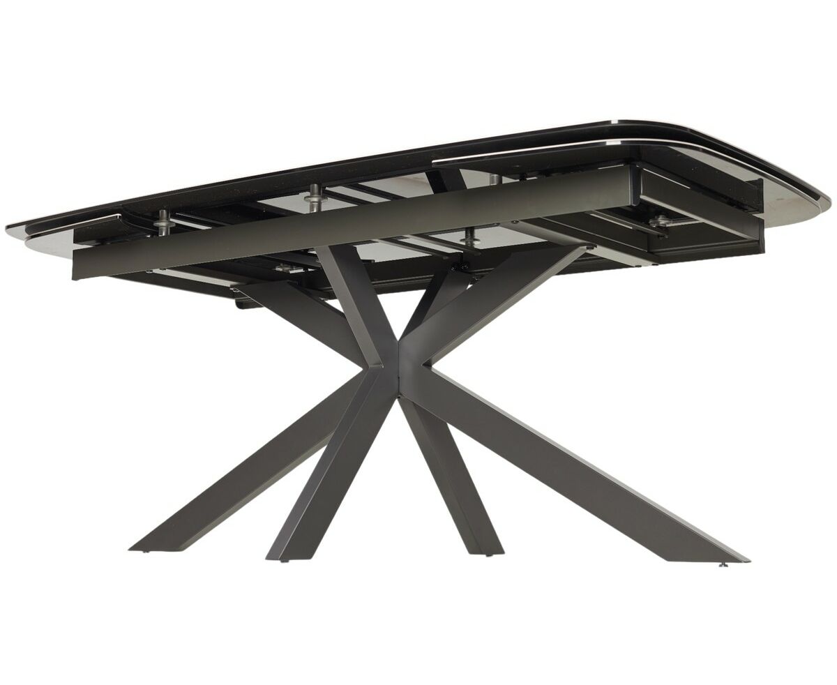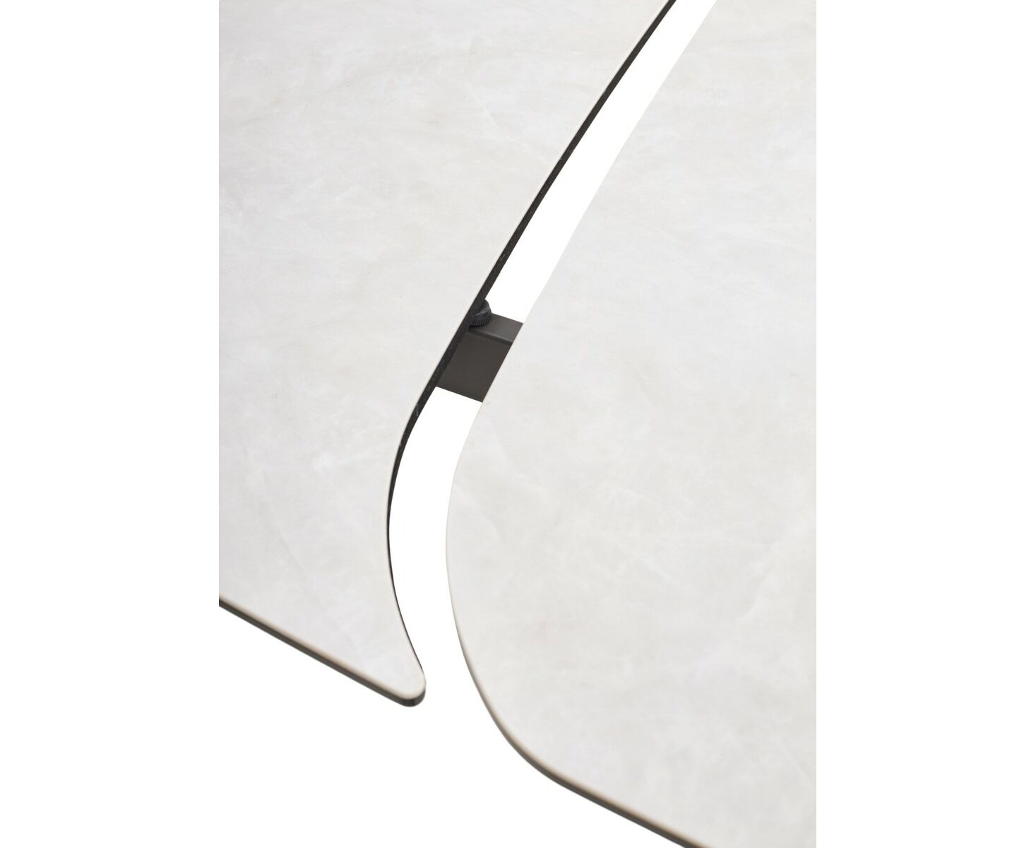 - двухсторонняя торцевая система раскладывания, две независимые вставки по краям по 40 см позволяют увеличить длину столешницы на 220 или 260 см при необходимости, испанская керамика, толщина столешницы 11 мм (3 мм керамика + 8 мм закаленное стекло), не впитывает загрязнения, термостойкая;