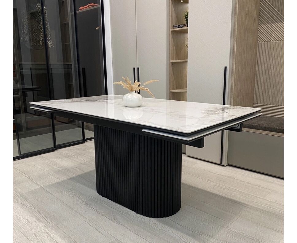 Стол АРИЯ 160 Белый мрамор MATTE, керамика / Черный каркас М-City
