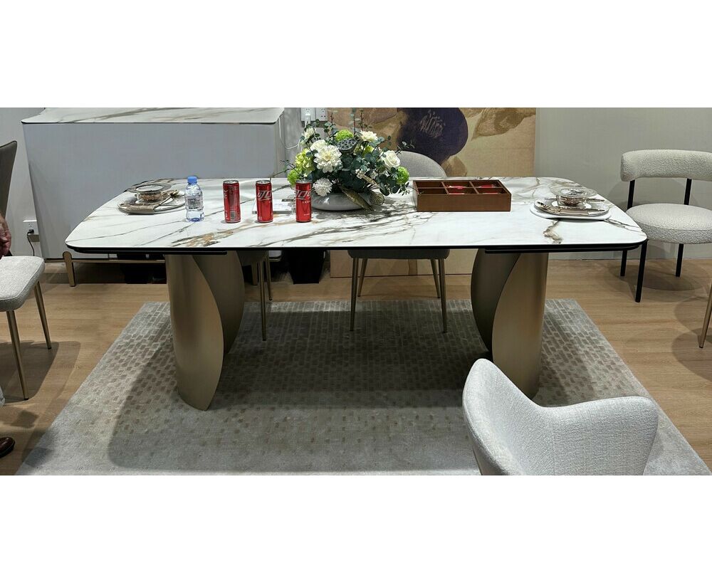 Стол дизайнерский BRONTE 200 с матовой керамической столешницей контрастный мрамор