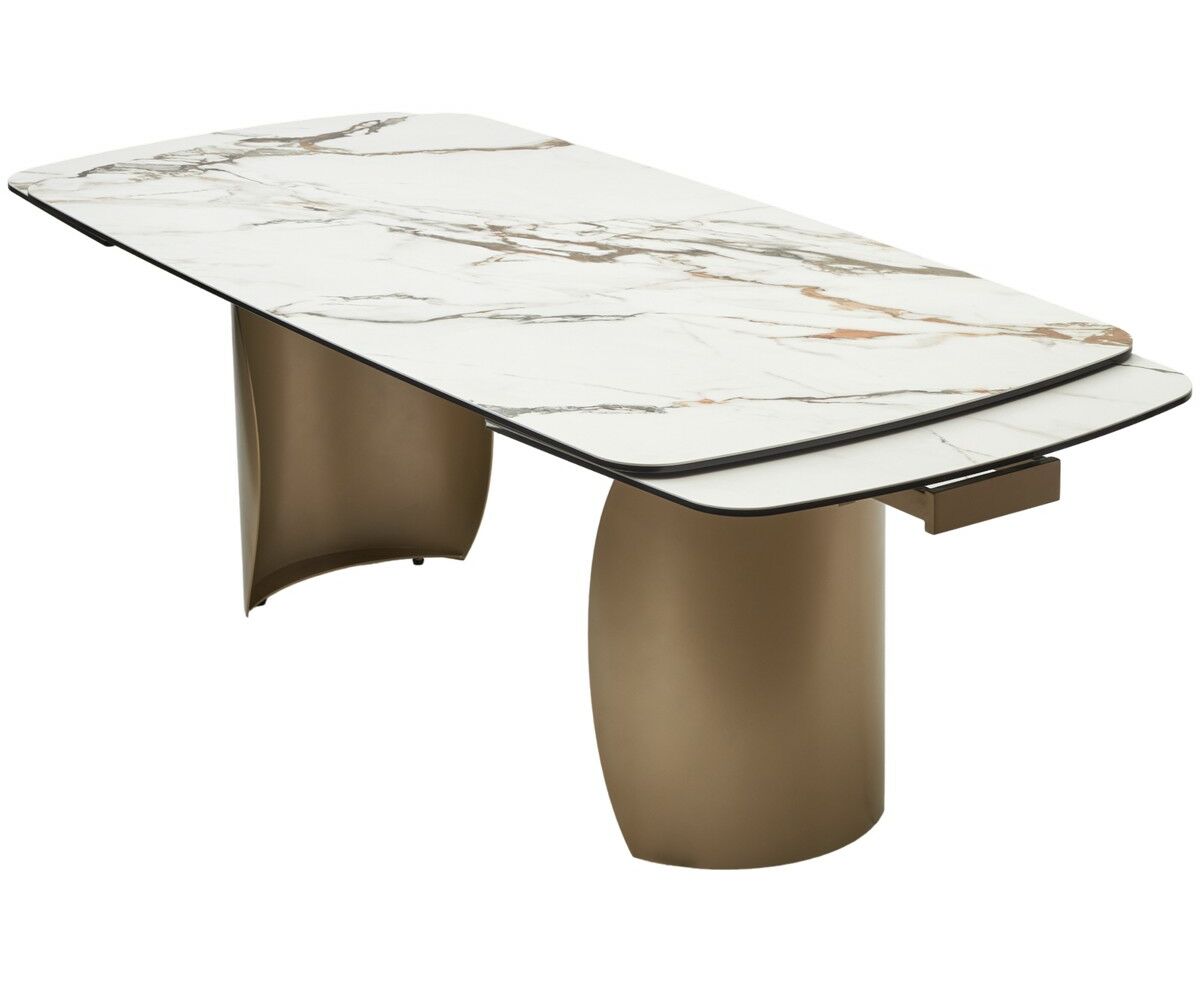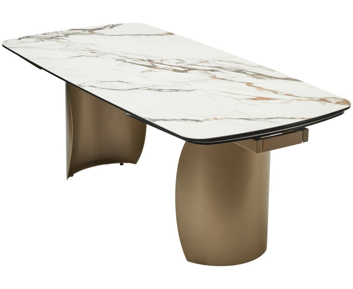 Стол BRONTE 200 раскладной KL-188 Контрастный мрамор матовый, итальянская керамика/ Шампань, ®DISAUR