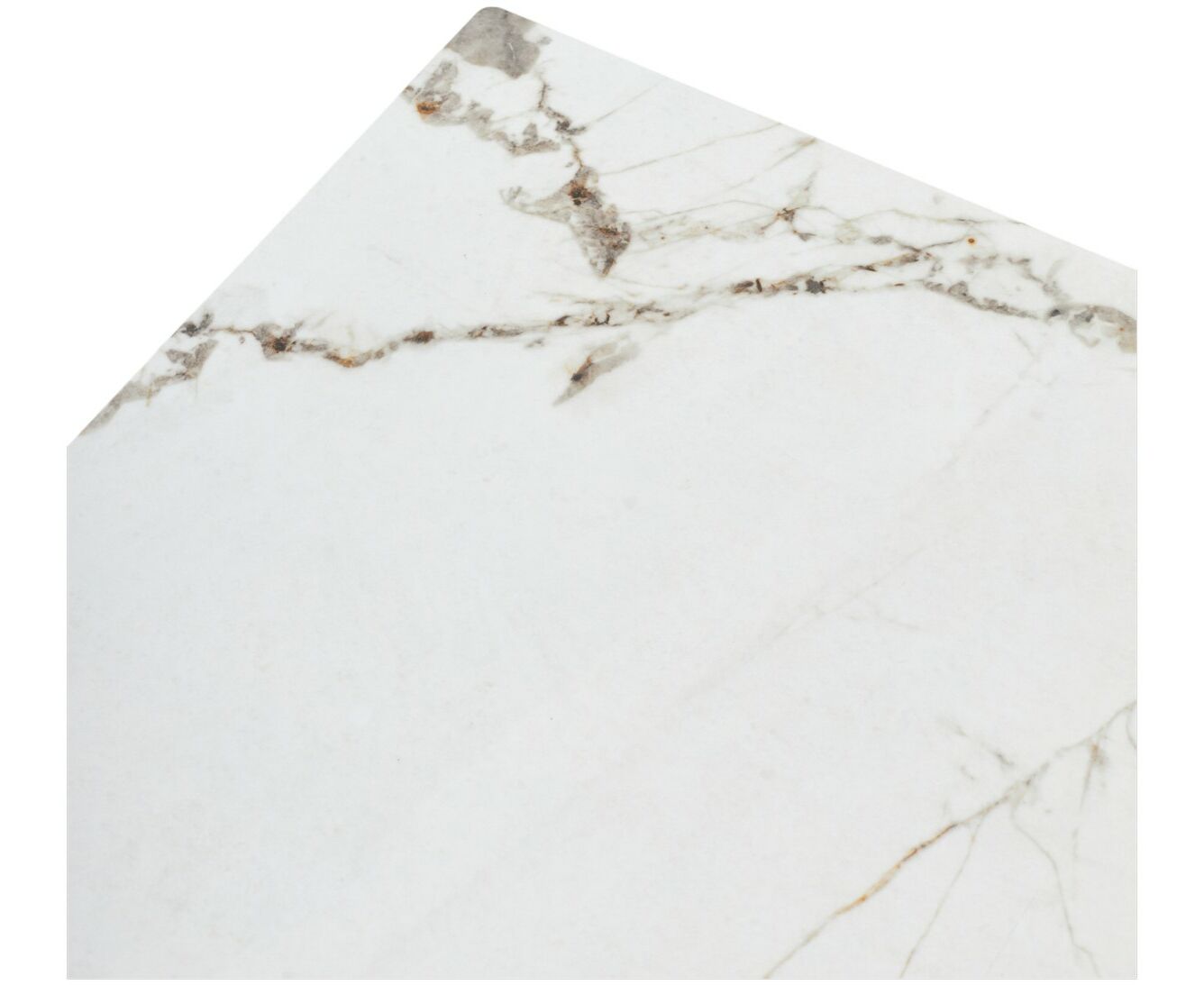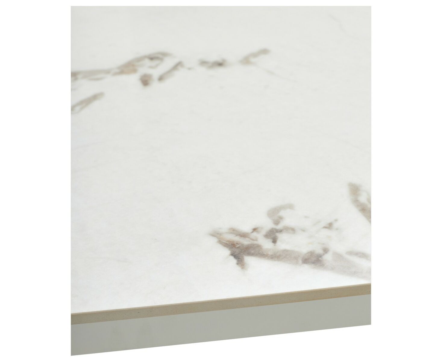 - столешница из монолитной керамической плиты в цвете белый мрамор, глянец, толщина 11 мм, не царапается, не впитывает жидкость, легко моется, не боится перепадов температур;