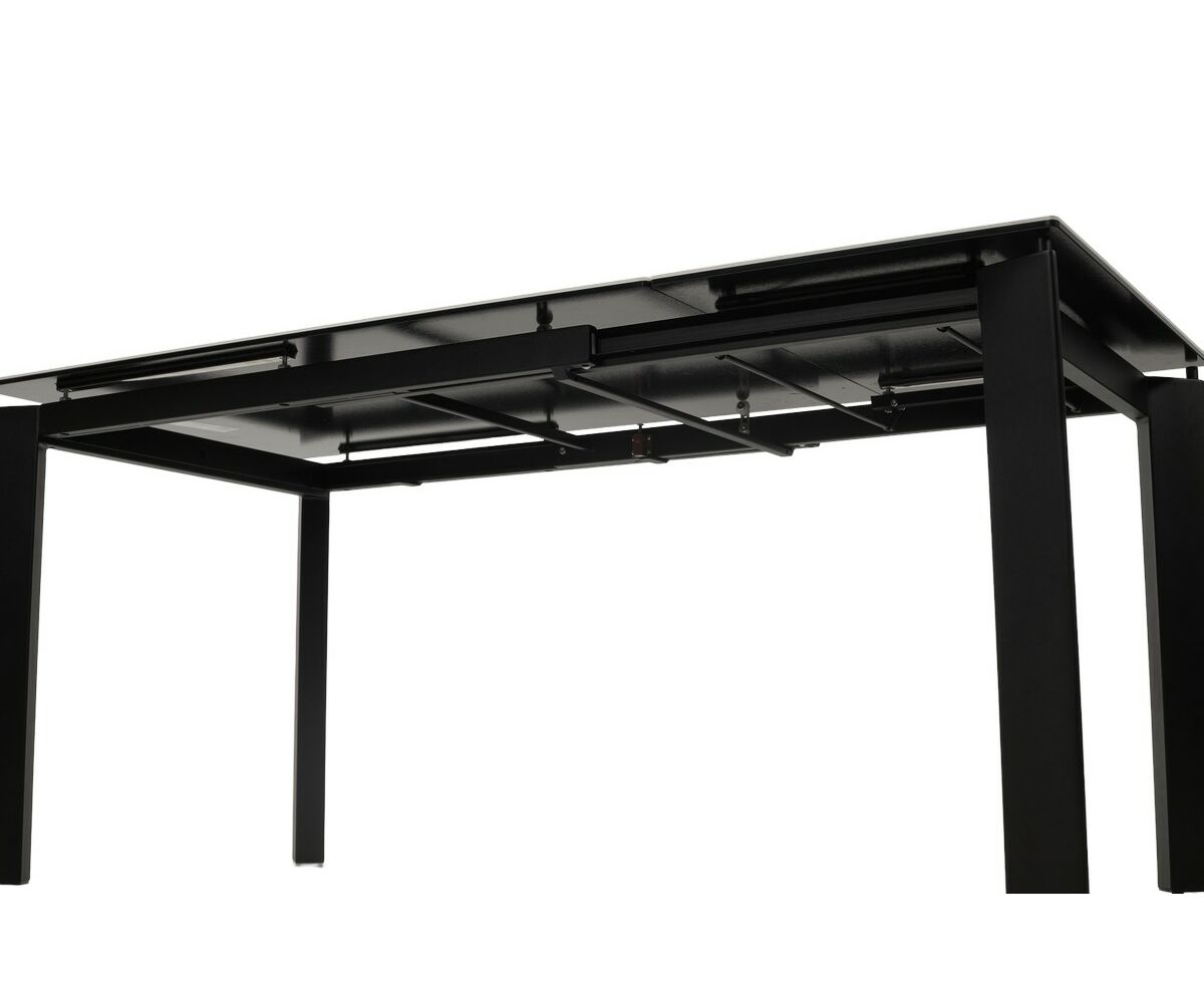 - основание стола - металл, цвет - черный, ножки стола расположены по углам столешницы под углом;