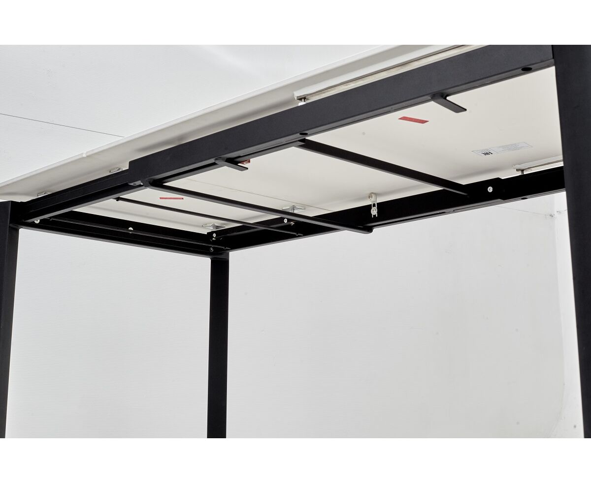 - вставка 50 см выдвигается с торца вместе с ножками со встроенными колесами, не царапающими пол, что позволяет быстро и легко увеличить длину столешницы до 170 см;