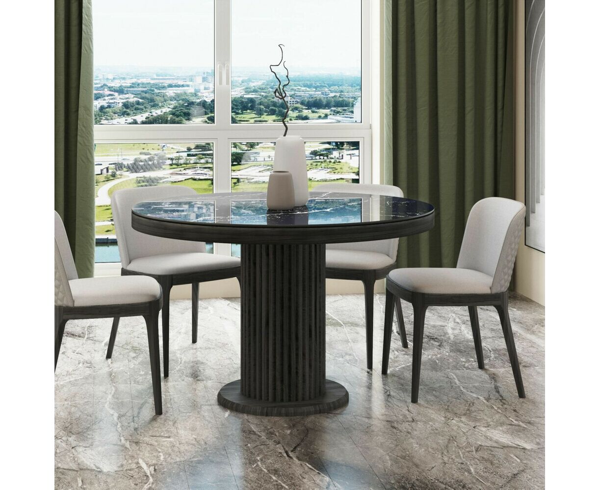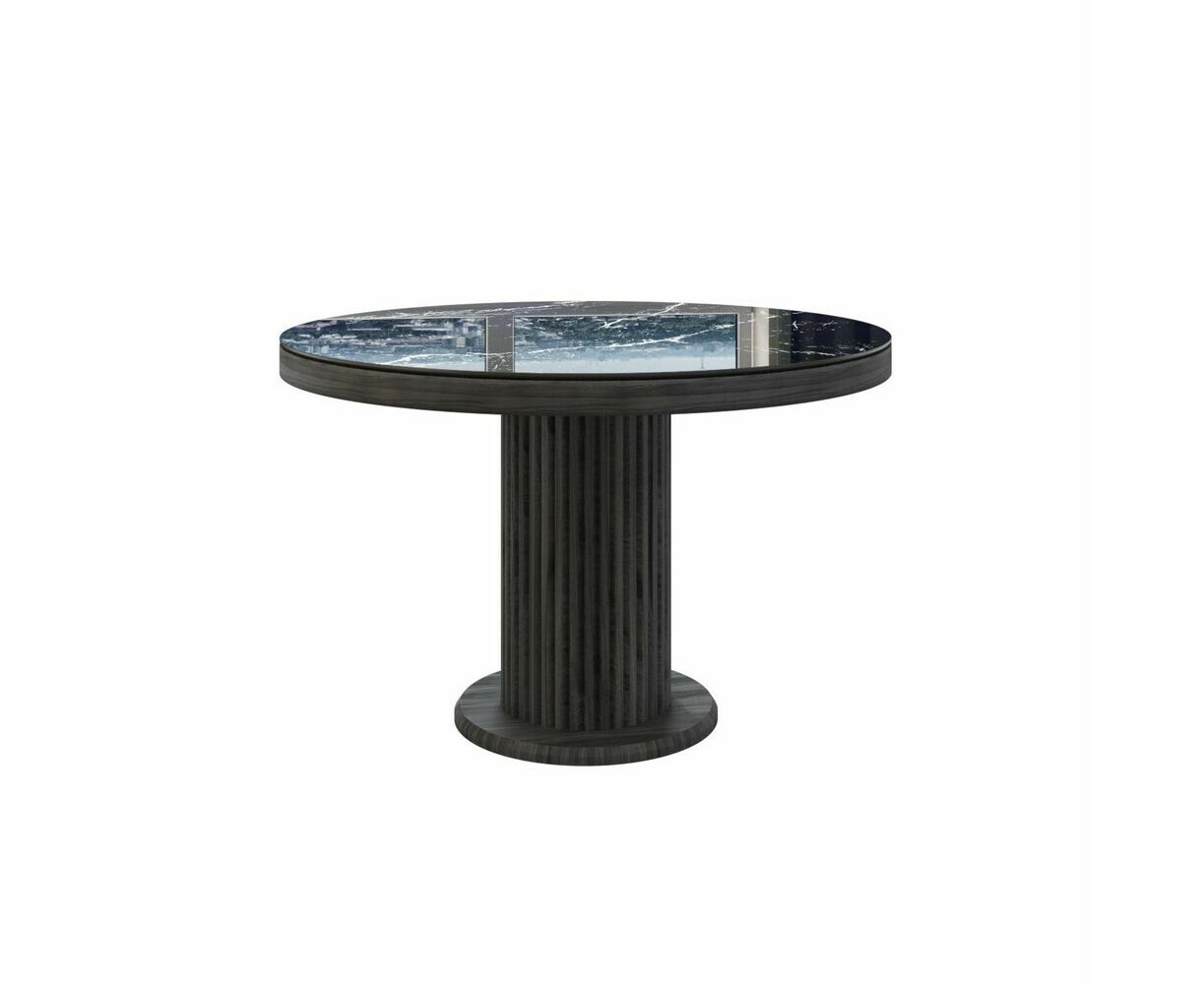 Стол Denver оснащен круглой нераскладывающейся столешницей, выполненной из глянцевой керамики толщиной 6 мм, что обеспечивает прочность и устойчивость к царапинам и пятнам.
