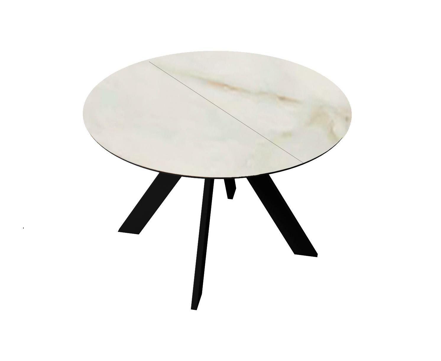 Стол DikLine SKC110 d1100 Керамика глянец Ostra Bianco (мрамор глянец белый)/подстолье черное/опоры черные