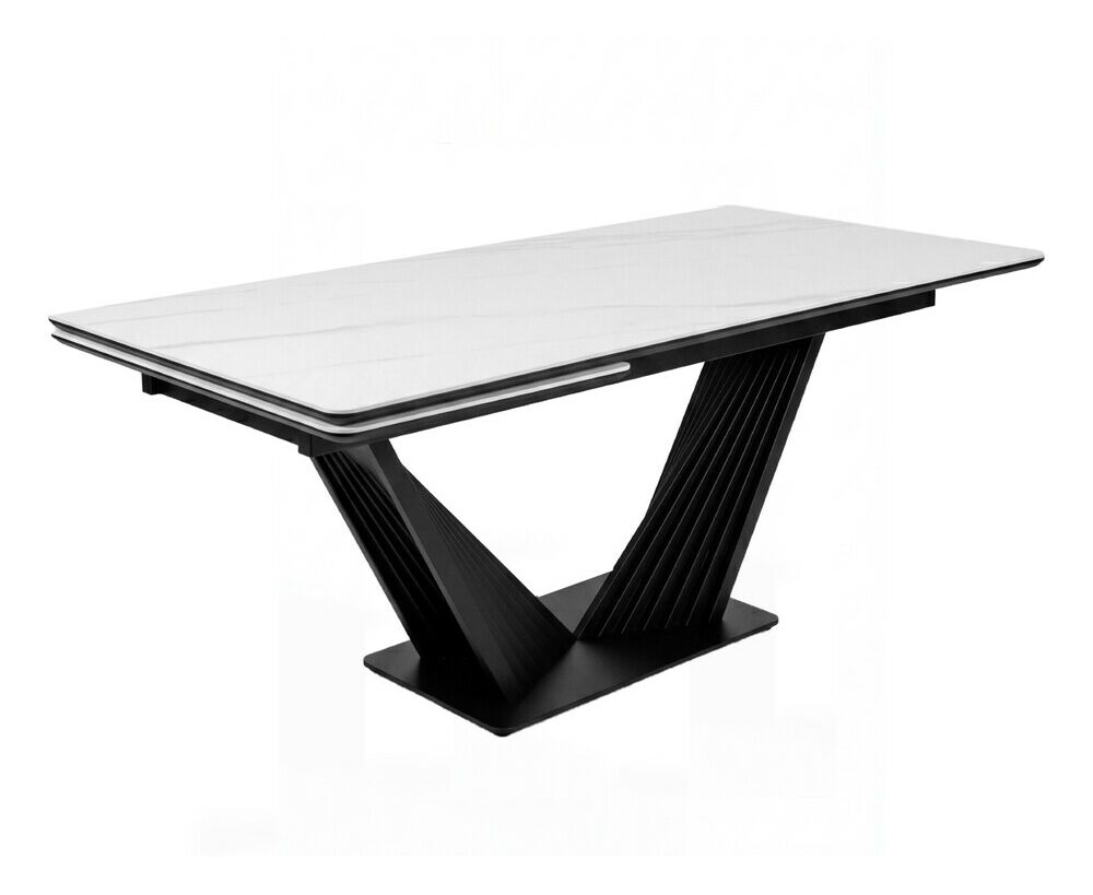 Стол с керамической столешницей - смотрится элегантно за счет тонких линий в конструкции подстолья и столешницы.