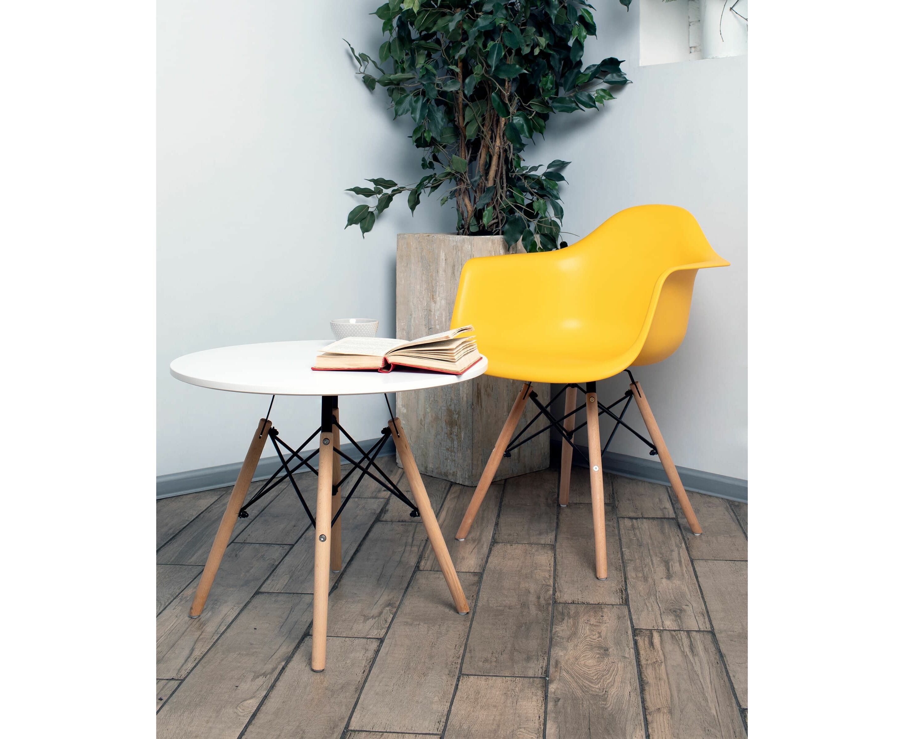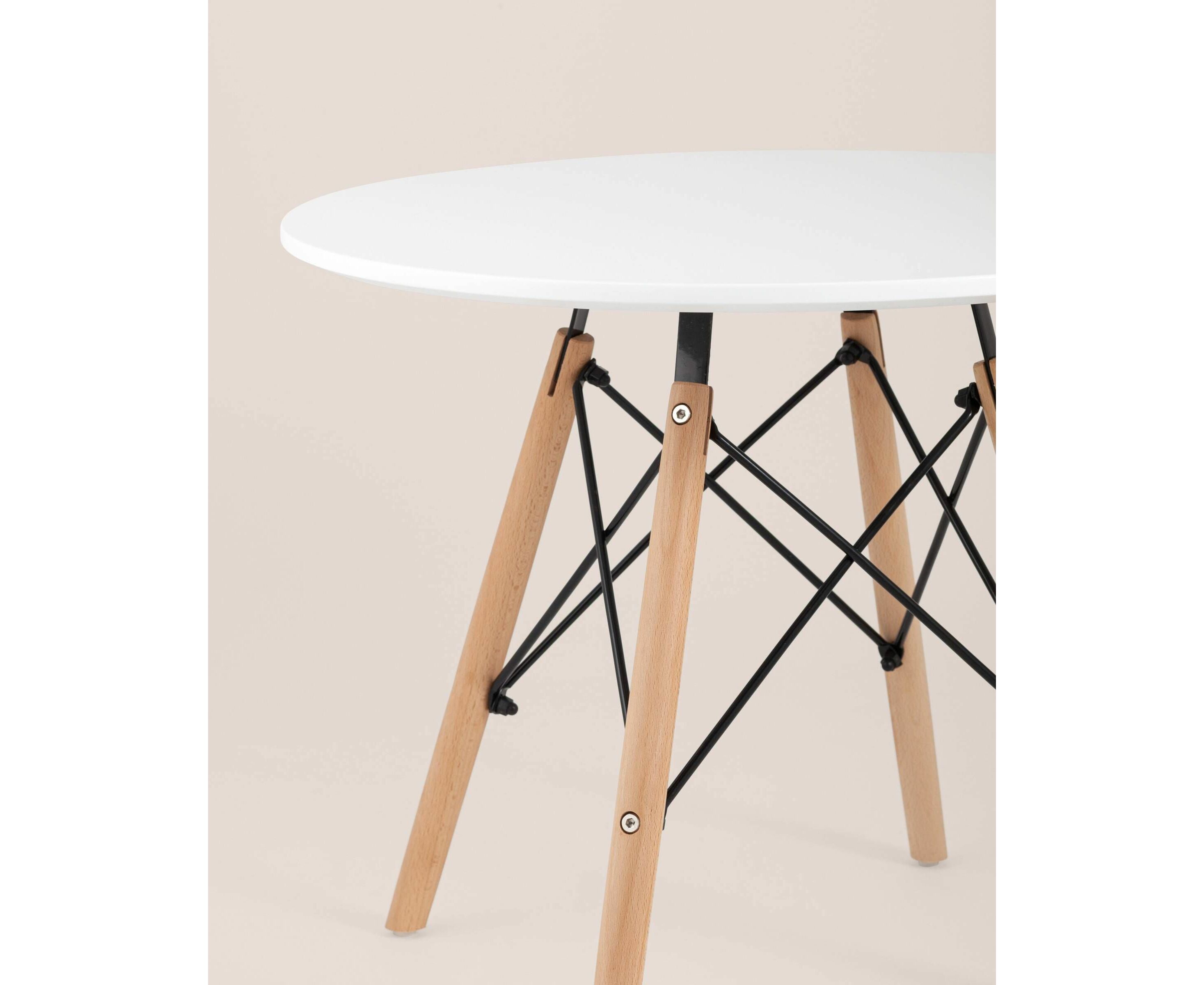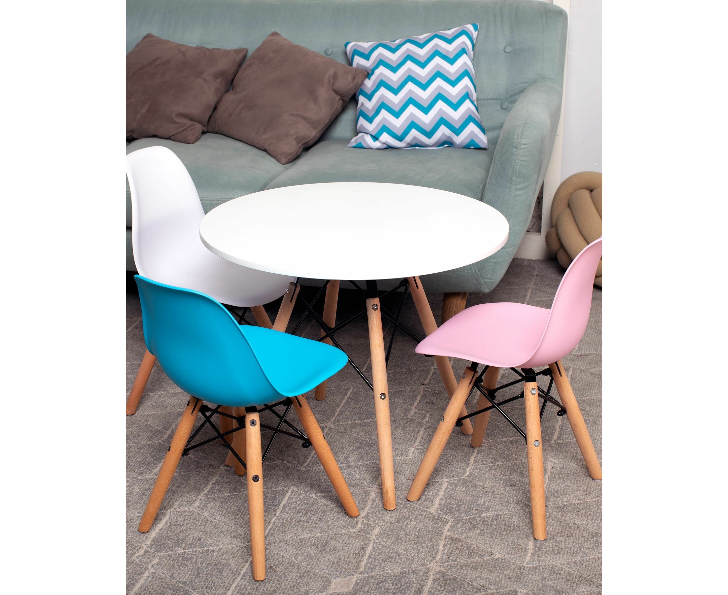 Детскийдизайнерский стол очень компактный и неприхотлив в эксплуатации. Деревянные ножки соединены красивой металлической конструкцией, которая смотрится эффектно идобавляет модели надежности. Белая столешница изготовлена из качественного МДФ. Оптимально для детей дошкольного возраста.