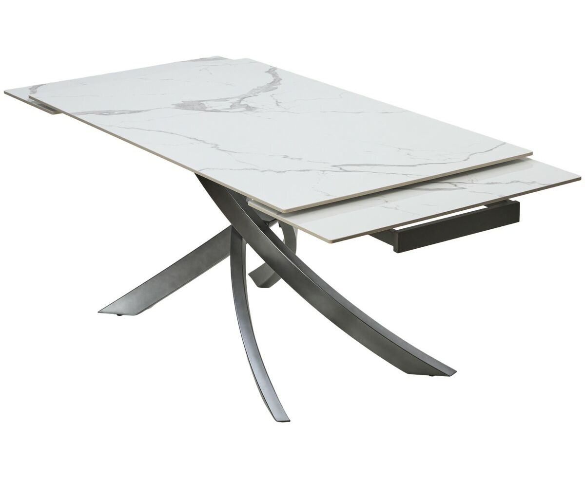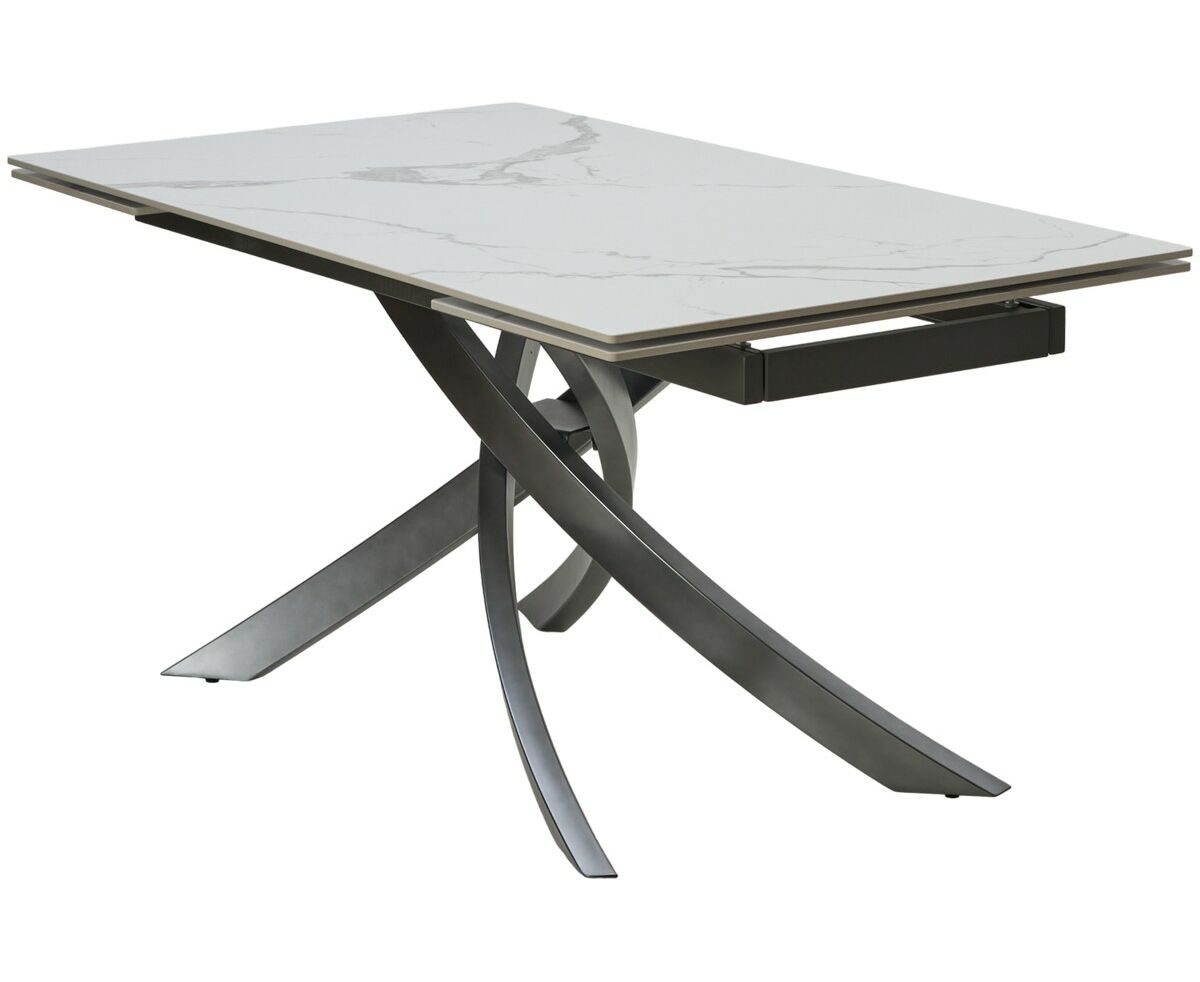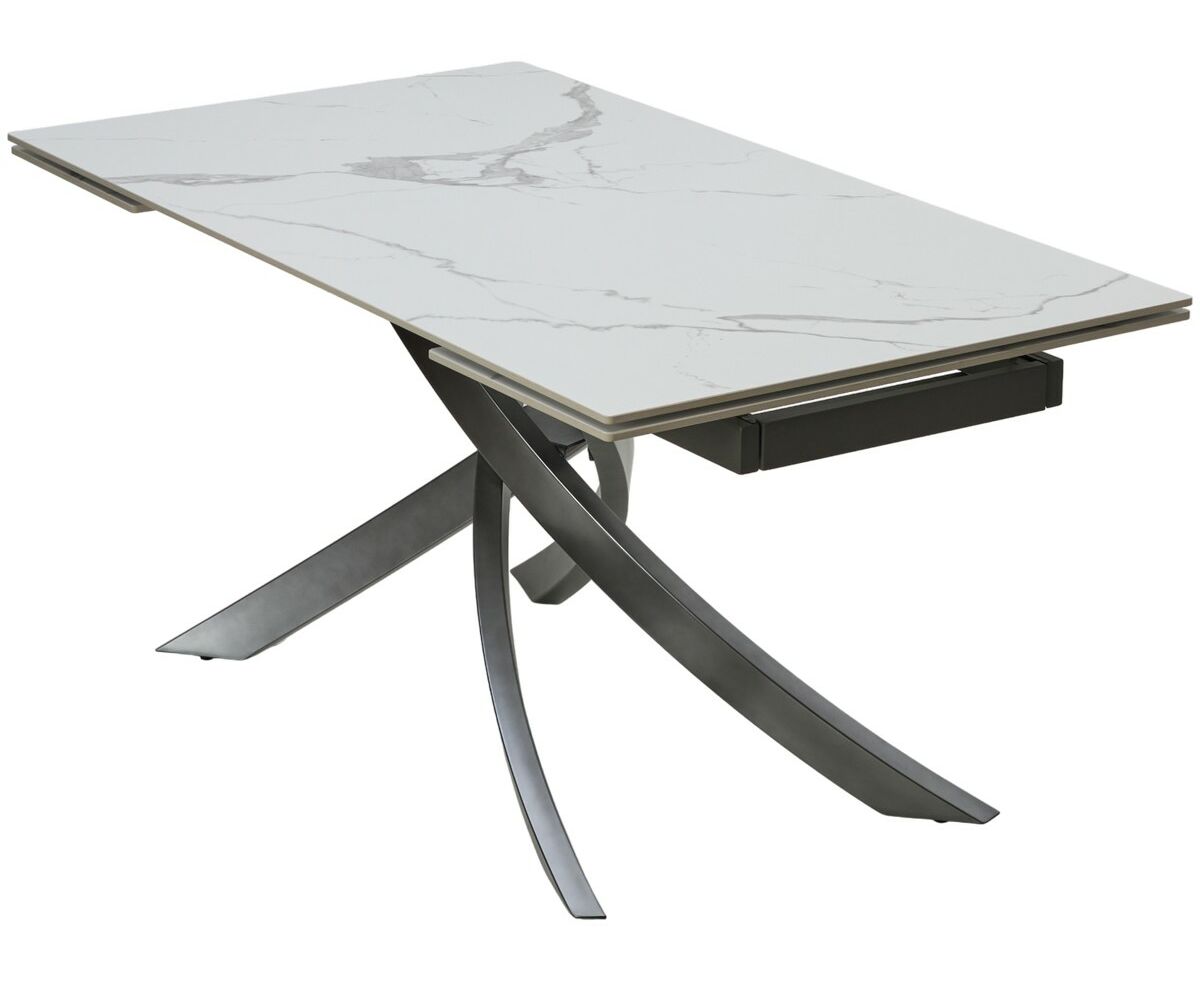 Стол ESTEBIO 160 GLOSS STATUARIO WHITE SOLID CERAMIC / Серый металлик, ®DISAUR