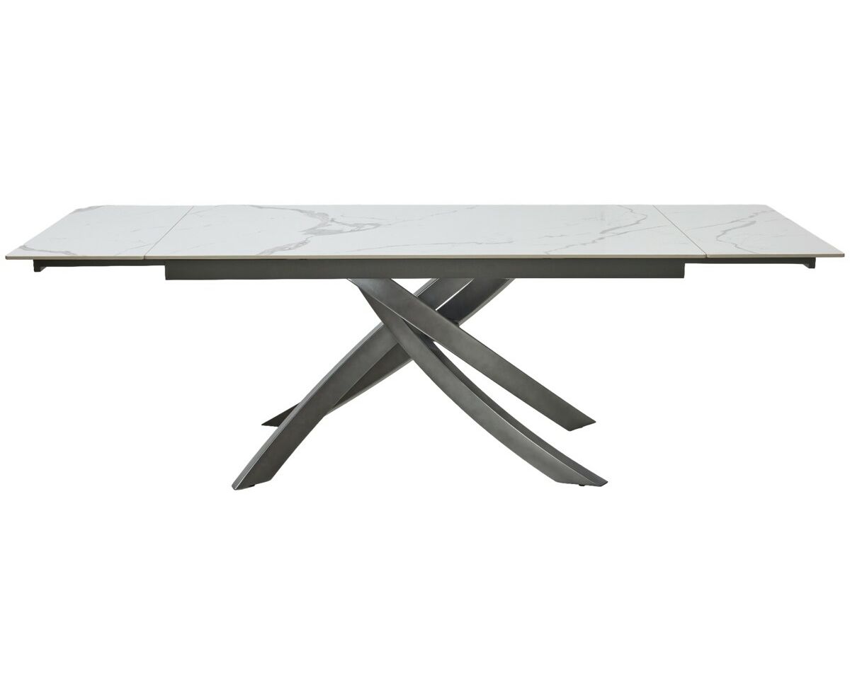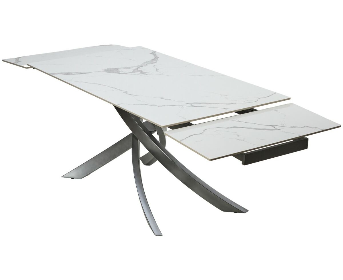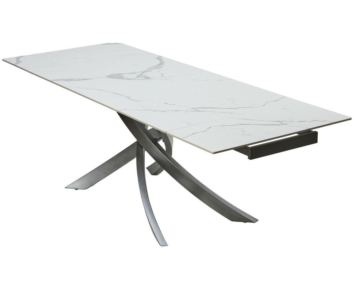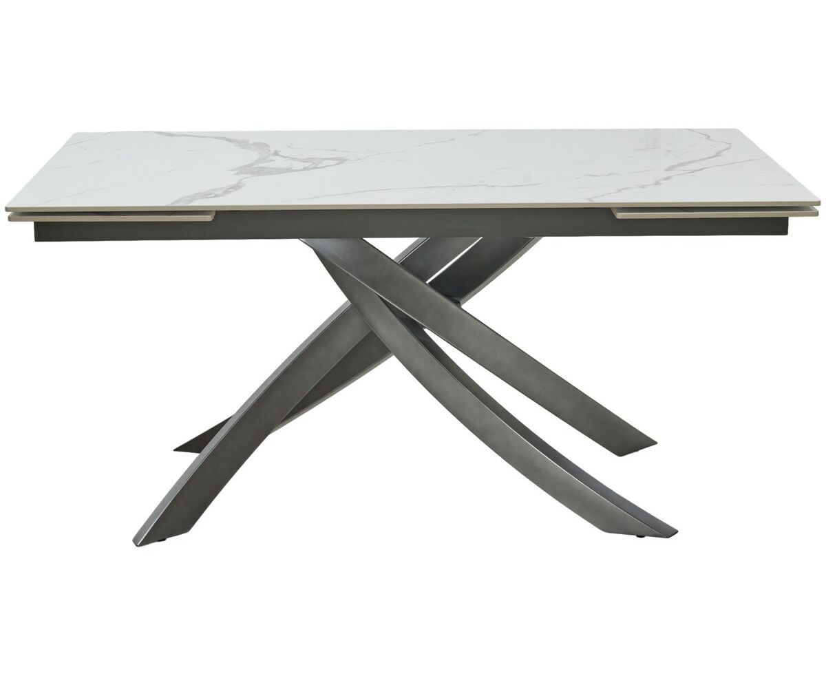Стол ESTEBIO 160 GLOSS STATUARIO WHITE SOLID CERAMIC / Серый металлик, ®DISAUR