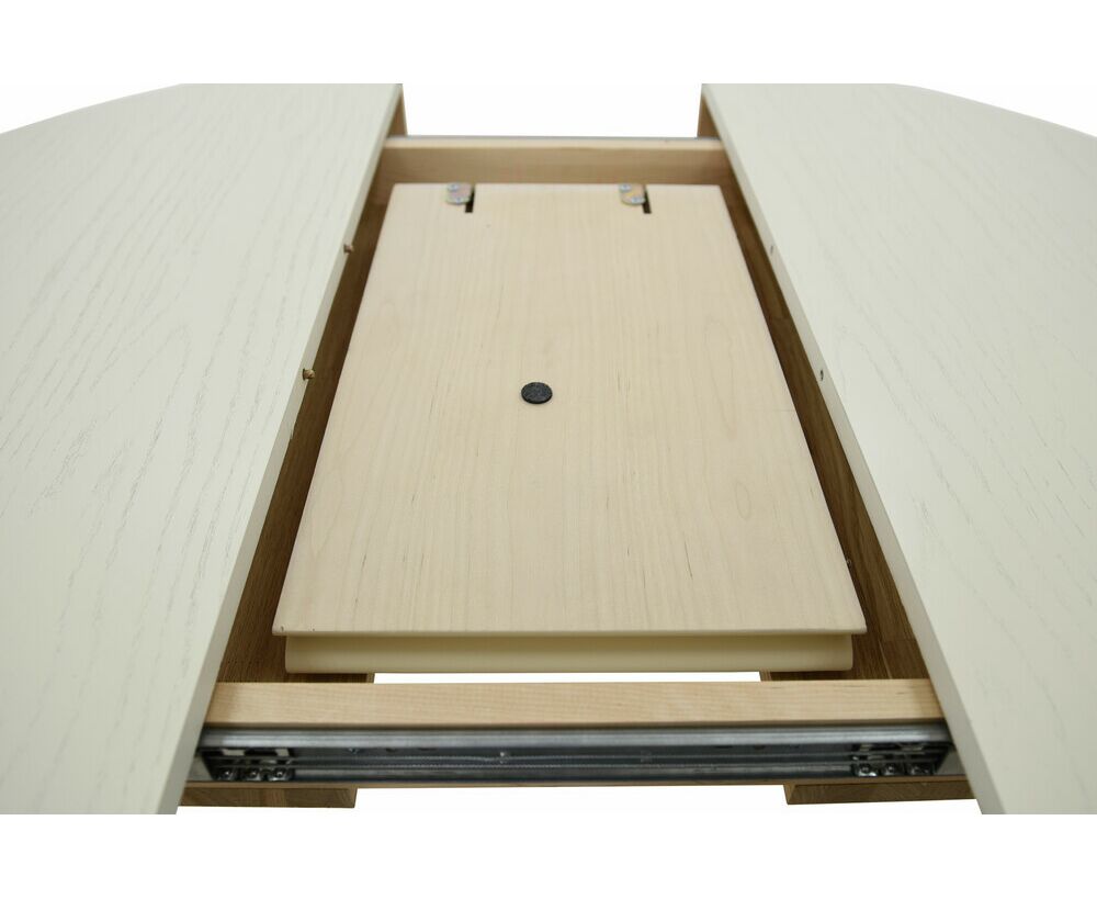 Механизм трансформации столешницы: вставка «бабочка» с синхронным раздвижением.