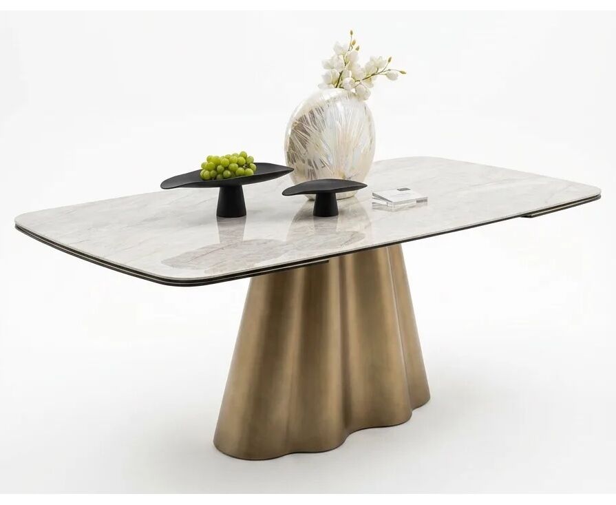 Стол КАРЛЕС (CARLES) 180 БЕЖЕВЫЙ МРАМОР (GLOSS SAND FLOW) керамика / Золотой винтаж каркас, ®DISAUR