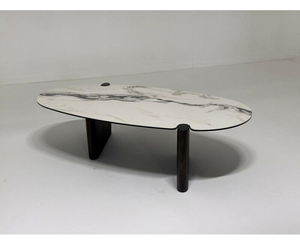 Стол кофейный ARN FENDI WHITE керамика на стекле/массив/ МДФ, облицованный дубовым шпоном ®DISAUR