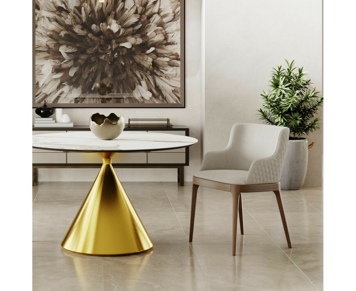 Стол круглый AXIS 120, керамика матовая, белая / опора золото