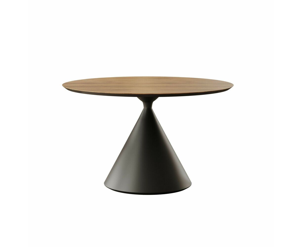 Стол с круглой столешницей AXIS не раскладывающийся, МДФ 24 мм с натуральным шпоном 1 мм. Опора стола выполнена в форме конуса и изготовлена из прочного металла. Цвет опоры - черный, что придает столу современный и стильный вид. Черный цвет добавляет элегантности и характера столу, при этом легко сочетается с различными интерьерными стилями.