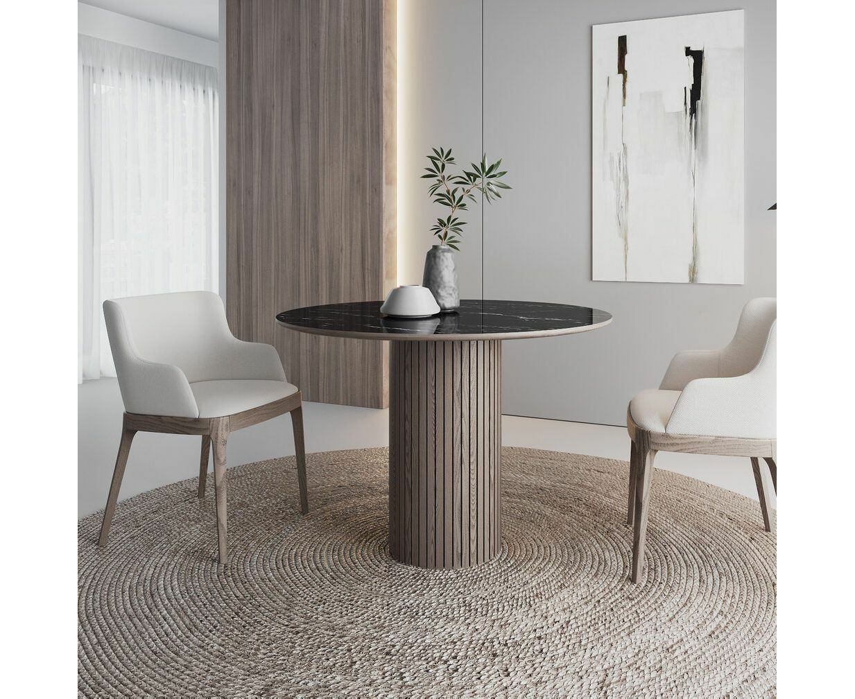 Стол круглый Denver 120, керамика глянцевая / опора дерево