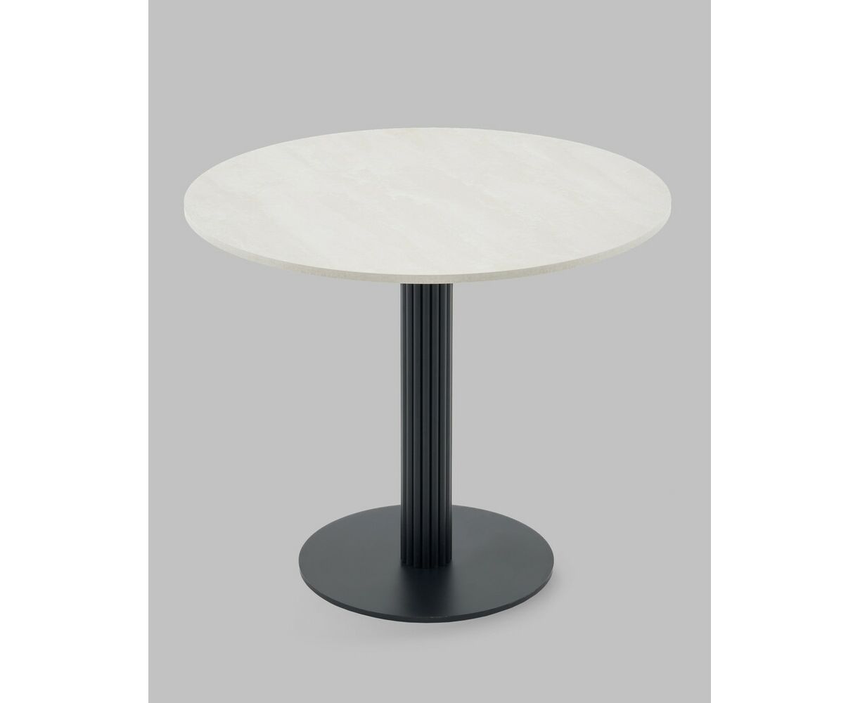 Стол круглый Фризбин D90, столешница МДФ ледяной камень, основание металл черный