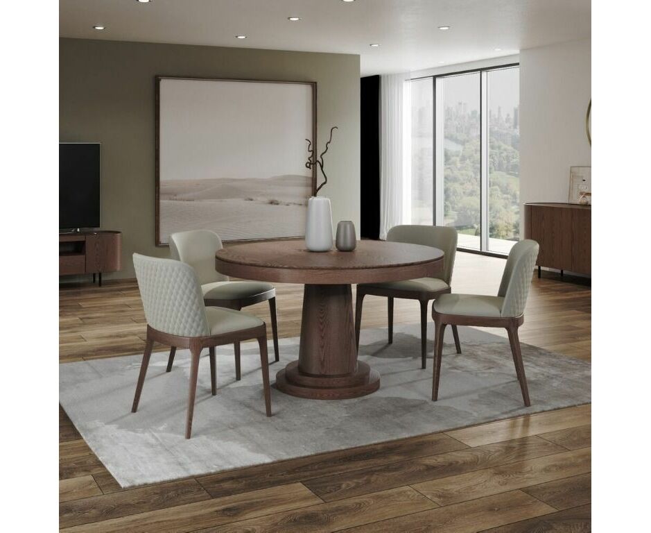 Стол Bilbo с круглой столешницей, не раскладывающийся, представляет собой элегантное и удобное решение для обеденной зоны. Столешница выполнена из шпона толщиной 1 мм, что придает ей стильный и современный вид. Опора стола выполнена из МДФ с натуральным шпоном, что придает конструкции прочность и устойчивость.