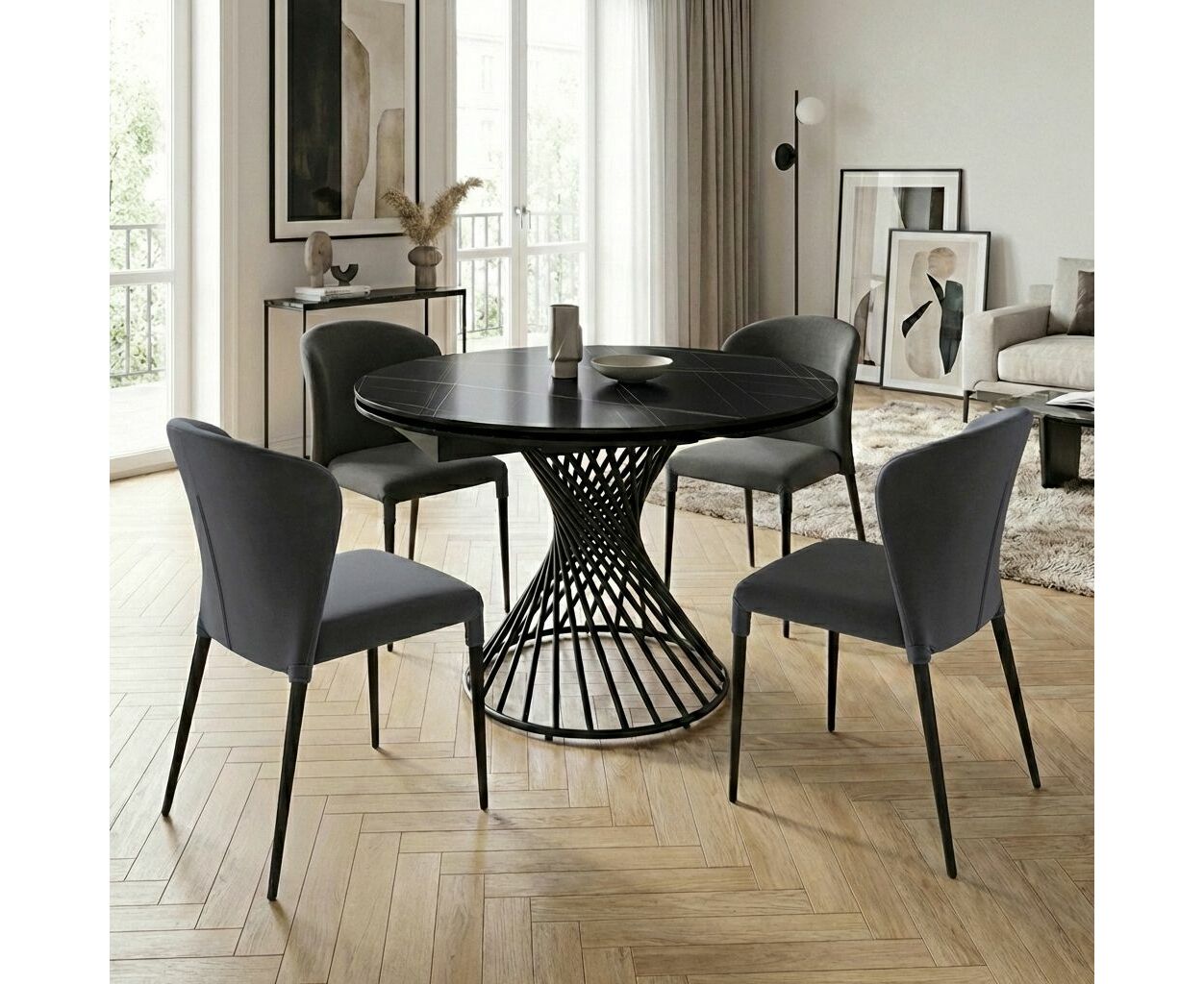Стол круглый раскладной Лава (120+30+30), керамика матовая Black Gold