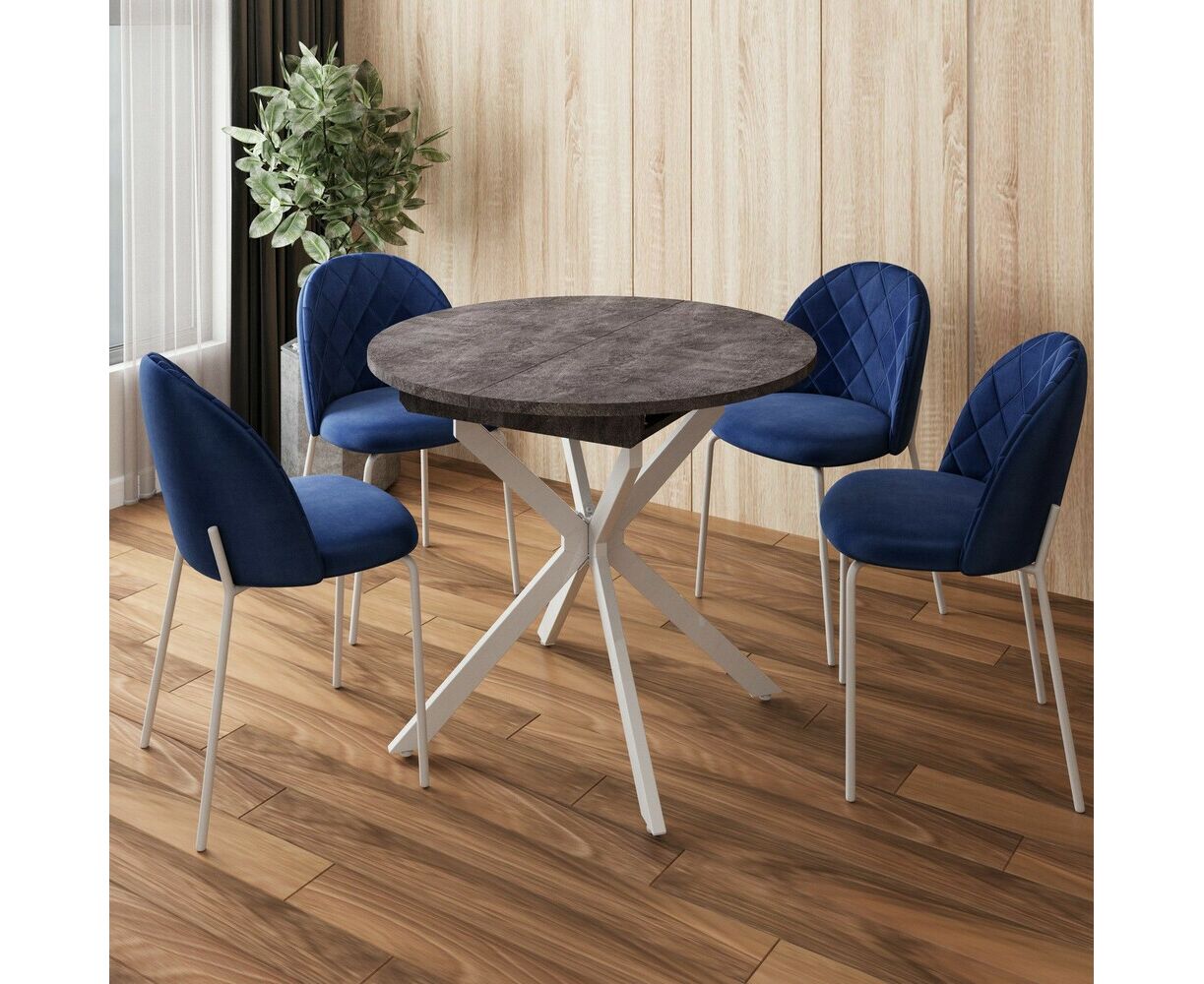 Стол круглый раздвижной Твист (90+30) камень темный / опоры белые