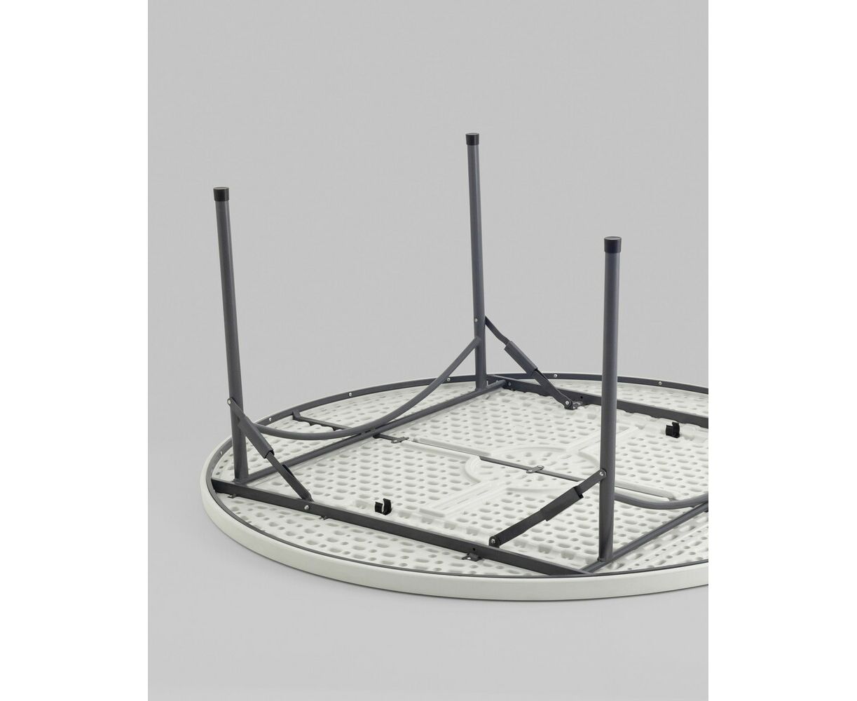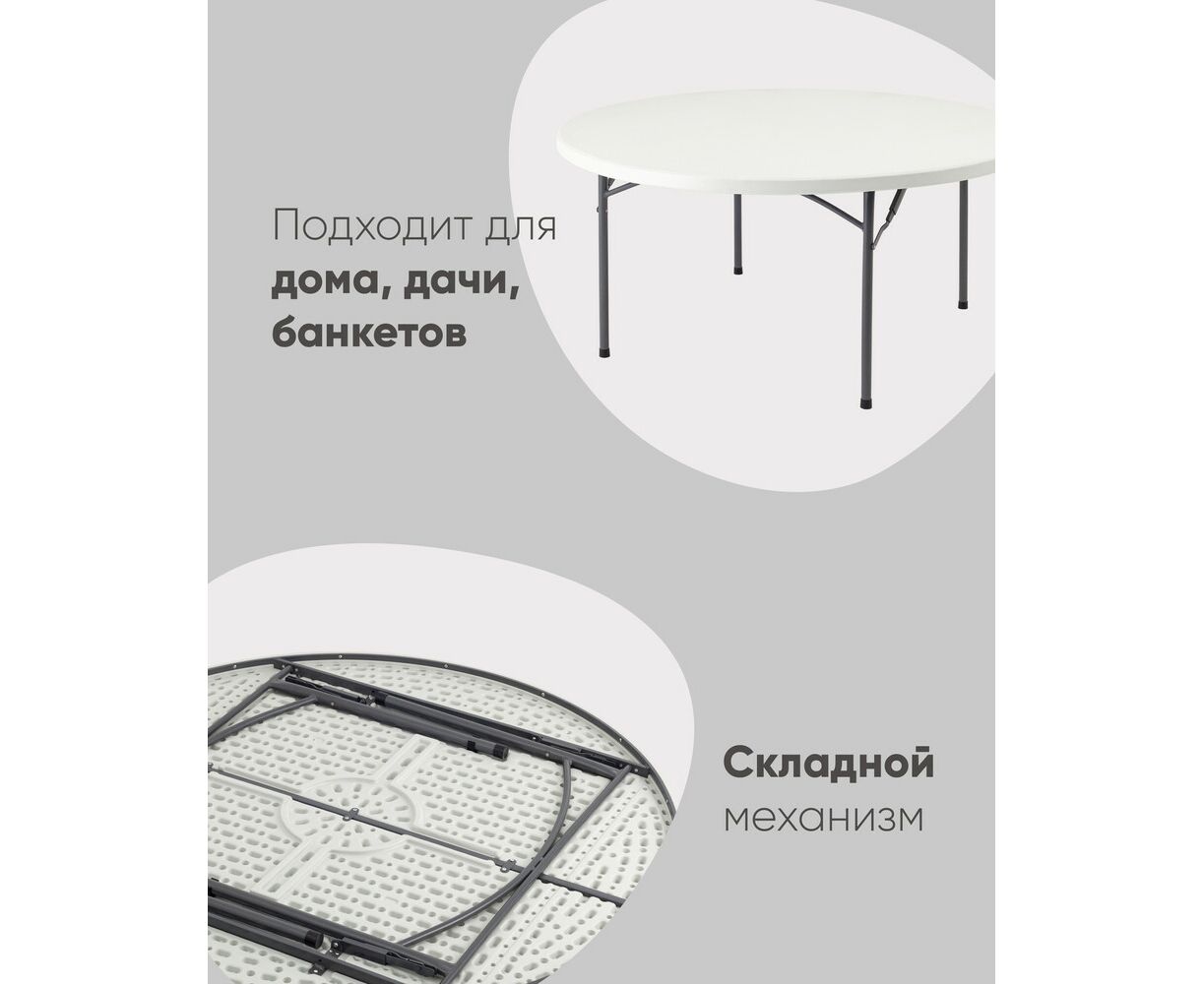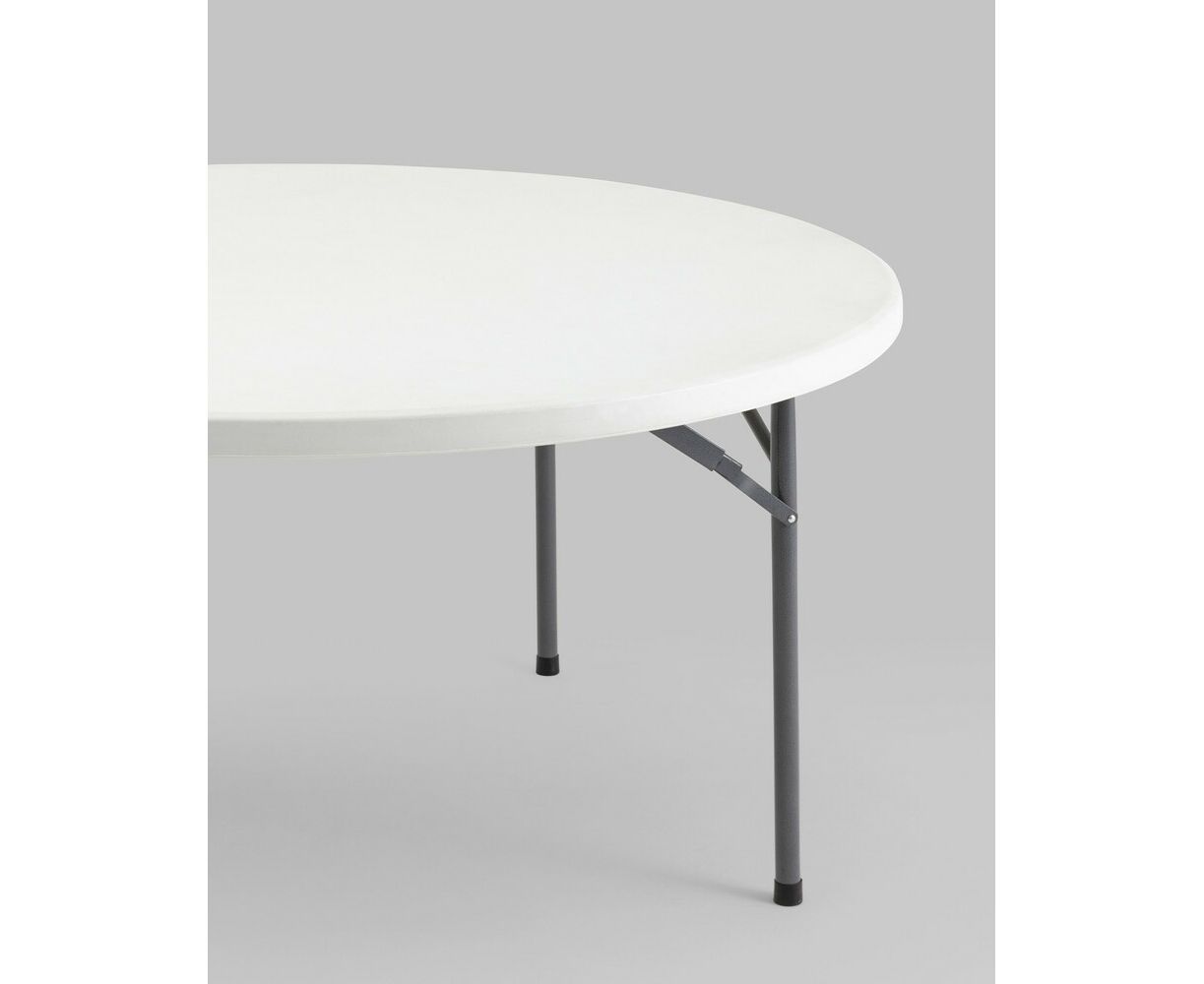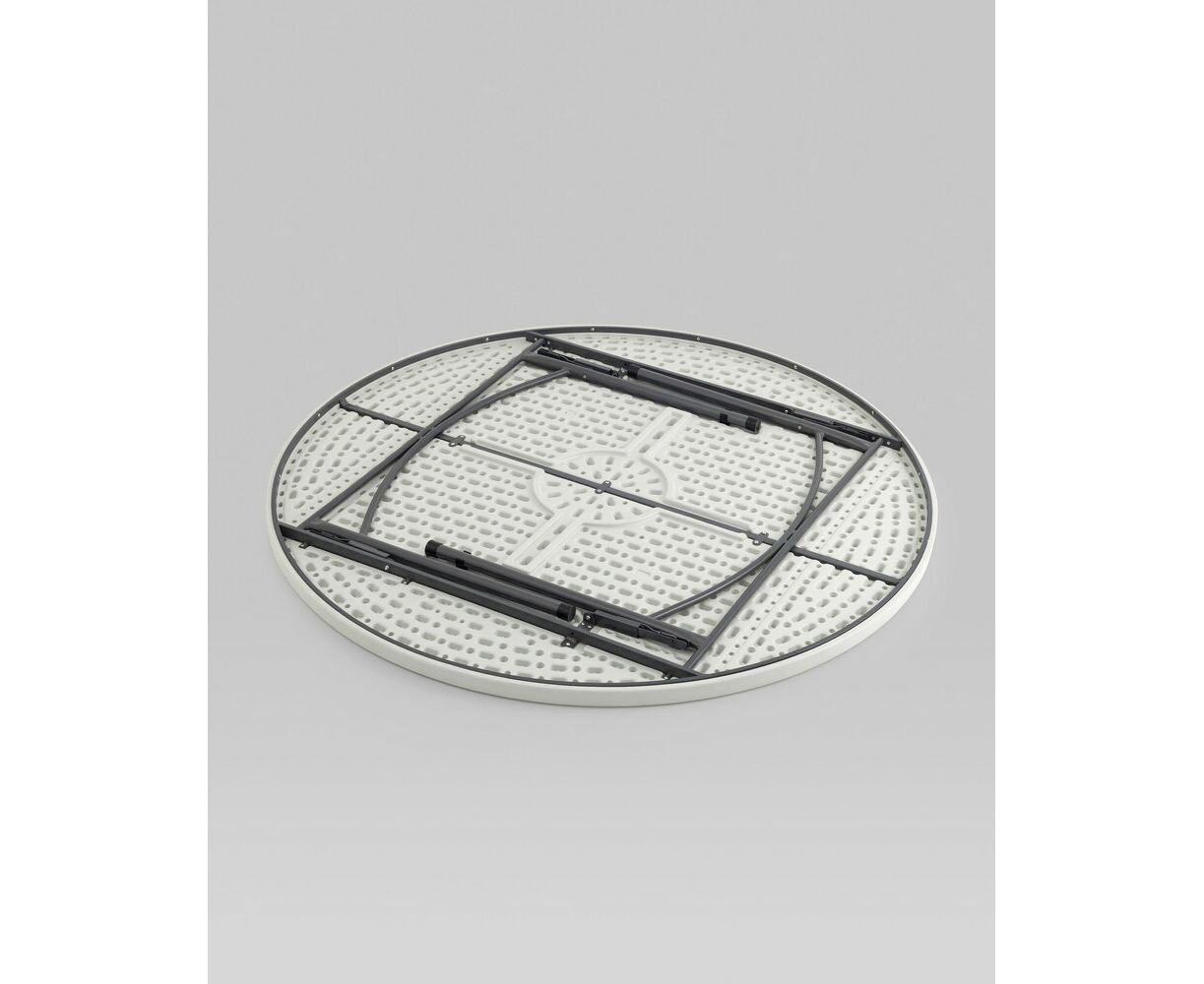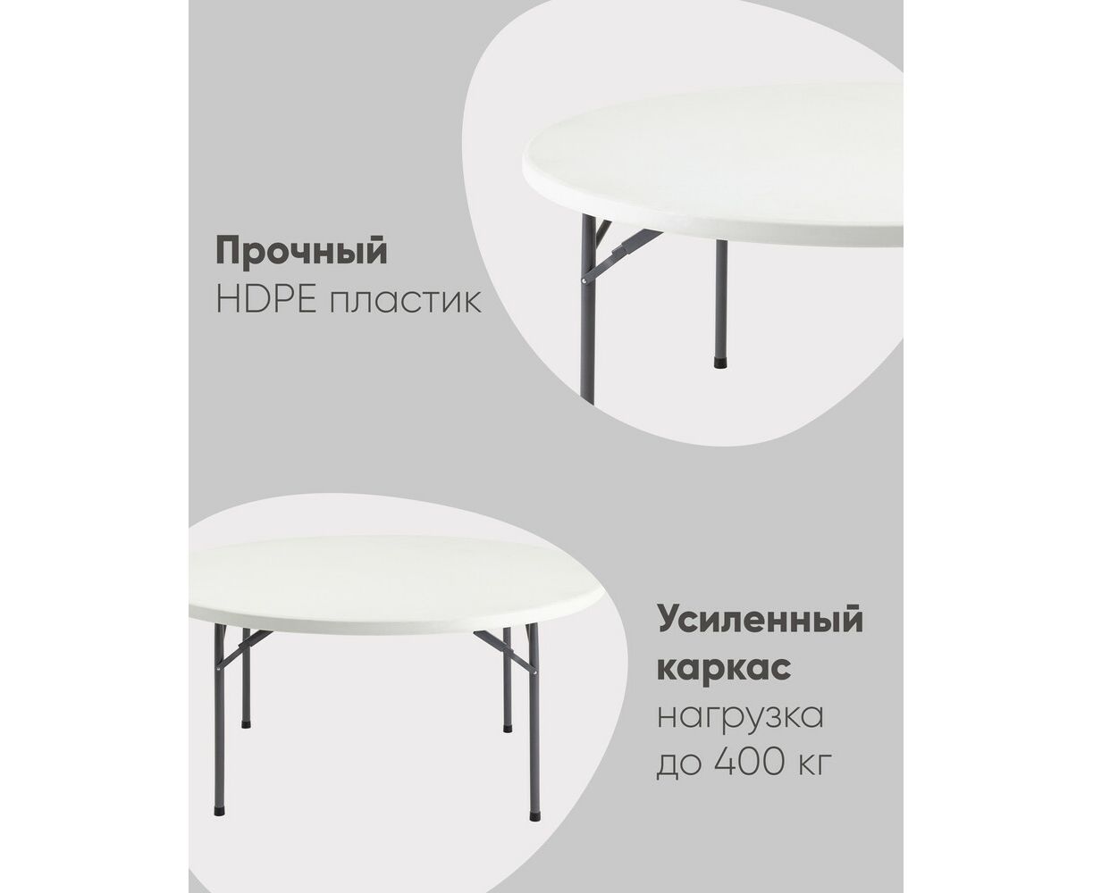 Стол круглый, 160*74 см. Для каркаса используется стальная труба особой прочности 32*1 мм, а столешница, толщиной 5 см, выполнена из 100% не переработанного полиэтилена HDPE (полиэтилен высокой плотности). Считается одним из более безопасных видов пластика. HDPE пластик выдерживает высокие нагрузки, не трескается при ударной нагрузке, эластичен в диапазоне температур от –70 до +100 °С.