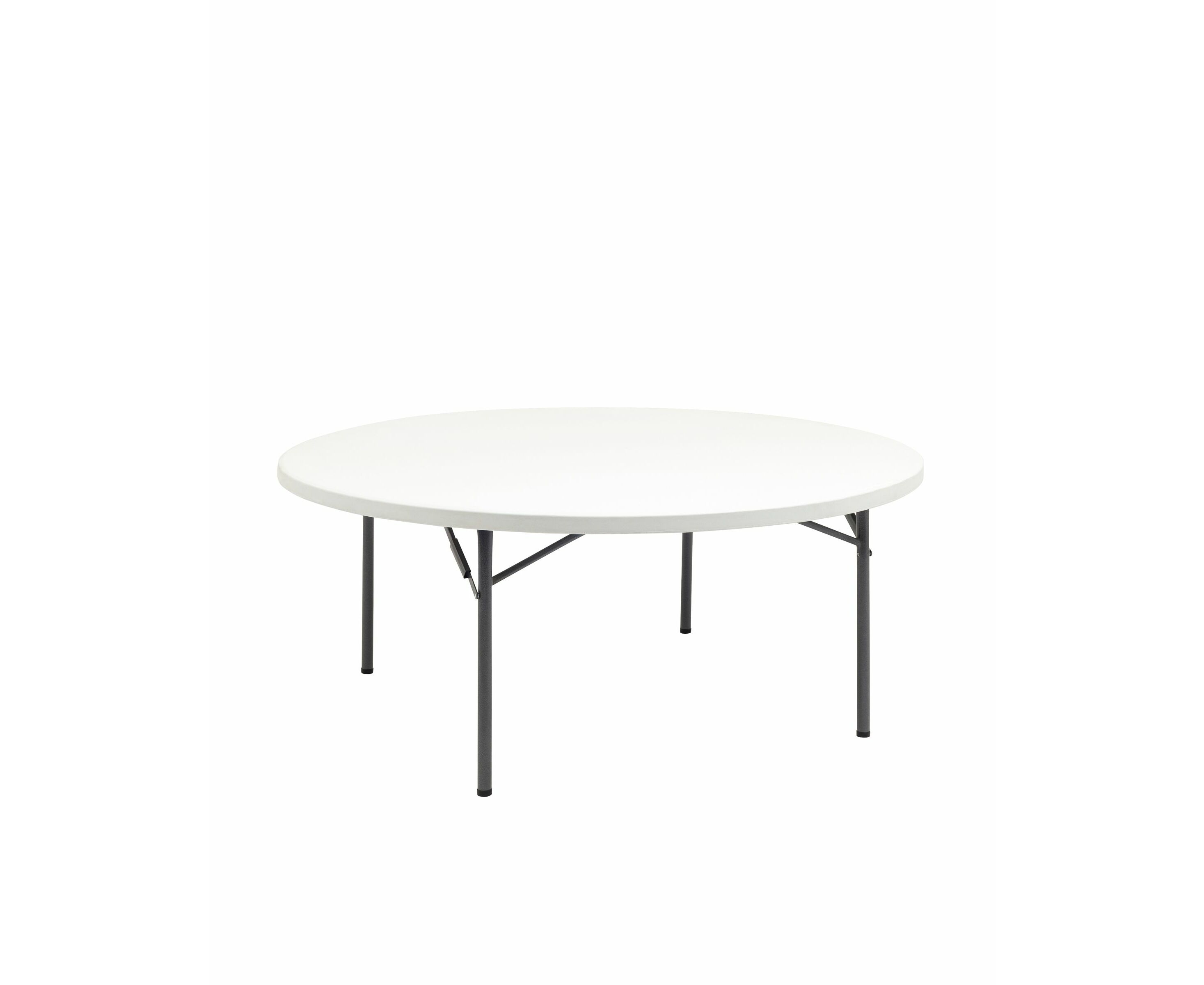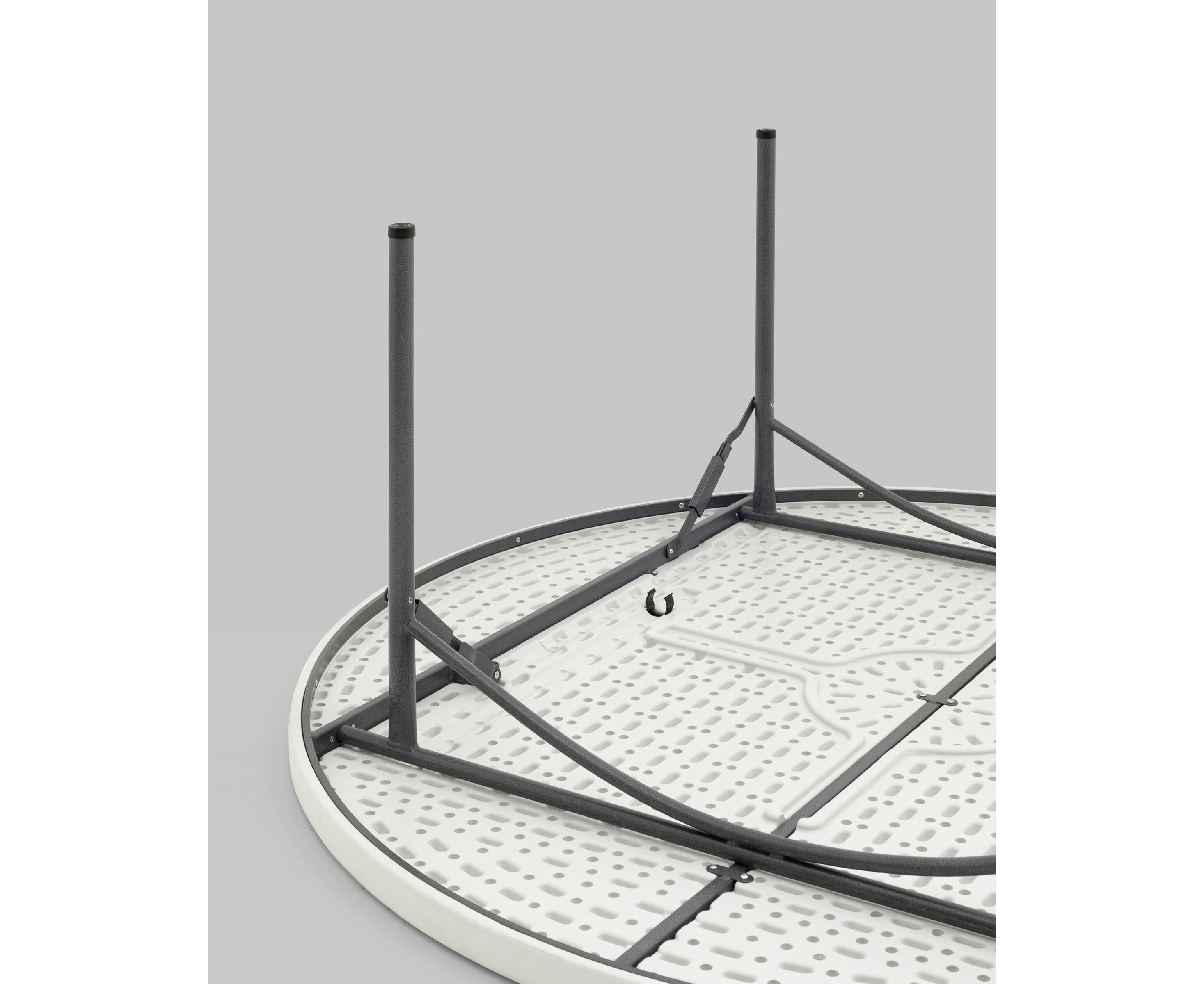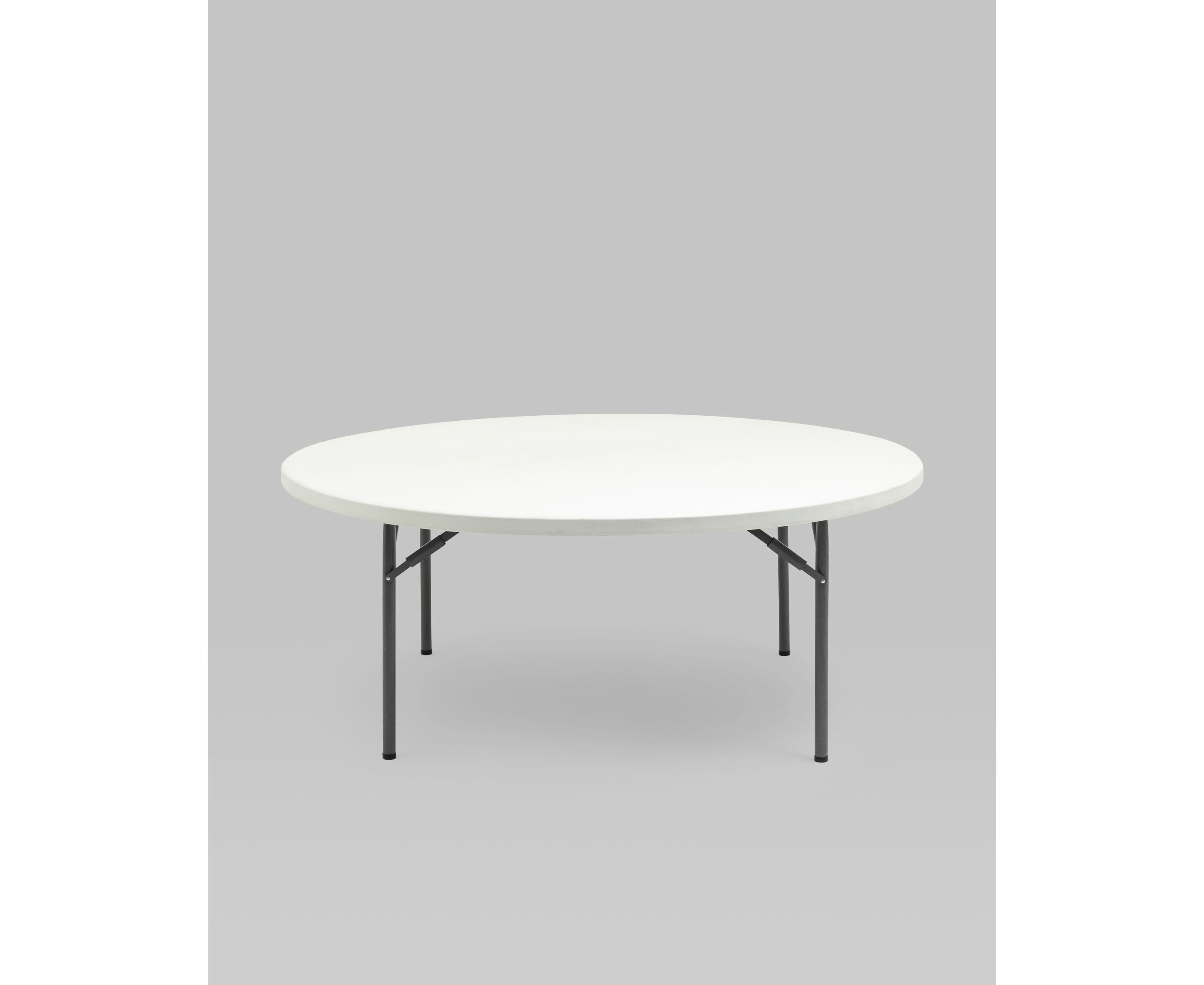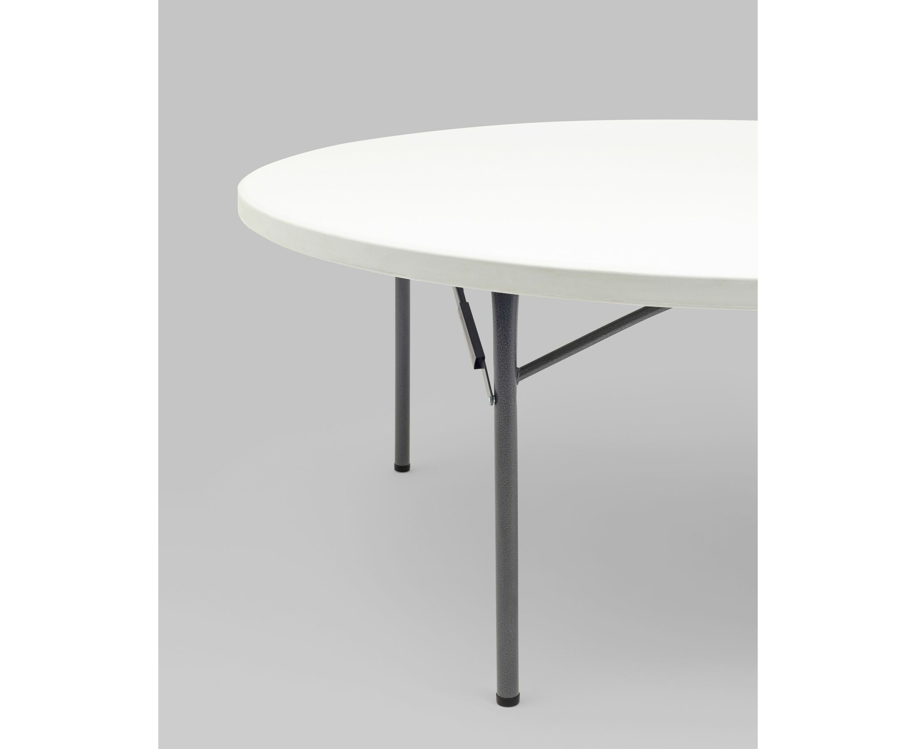 Стол круглый, 180*74 см. Для каркаса используется стальная труба особой прочности 32*1 мм, а столешница, толщиной 5 см, выполнена из 100% не переработанного полиэтилена HDPE (полиэтилен высокой плотности). Считается одним из более безопасных видов пластика. HDPE пластик выдерживает высокие нагрузки, не трескается при ударной нагрузке, эластичен в диапазоне температур от –70 до +100 °С.