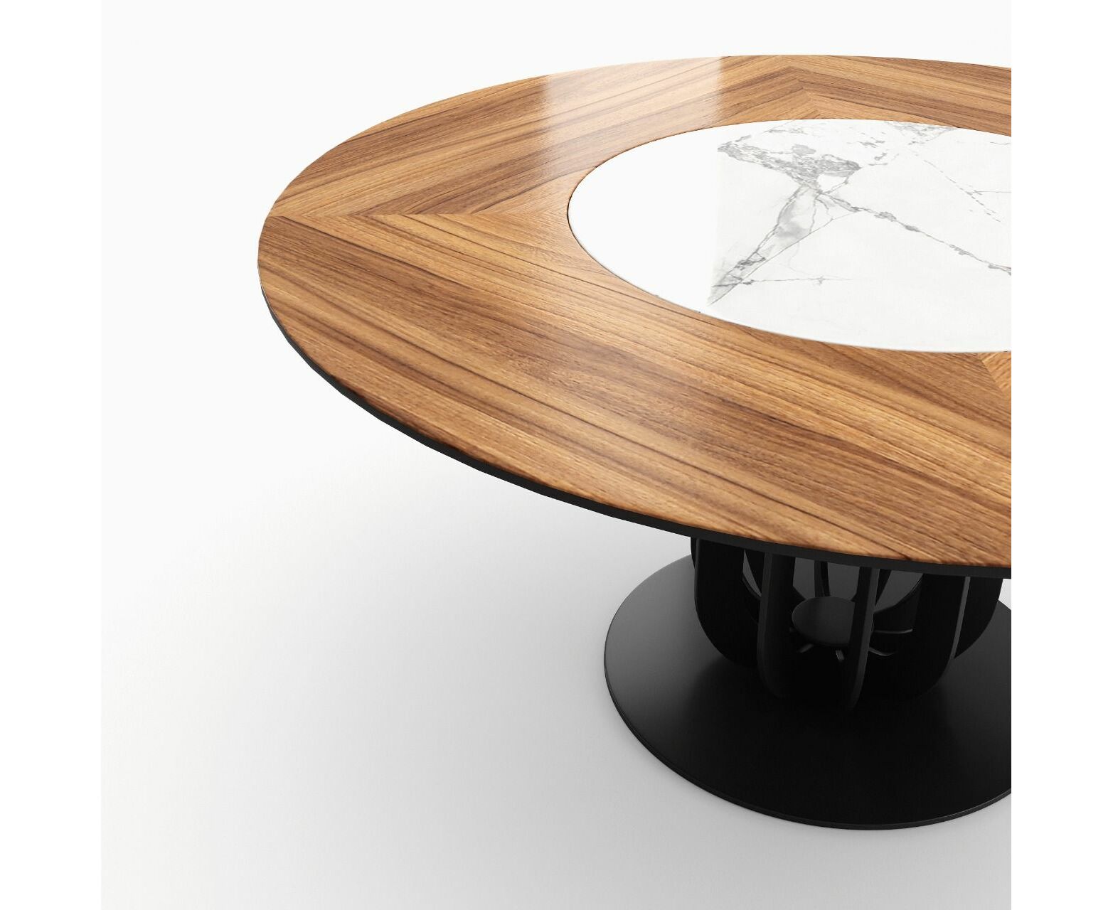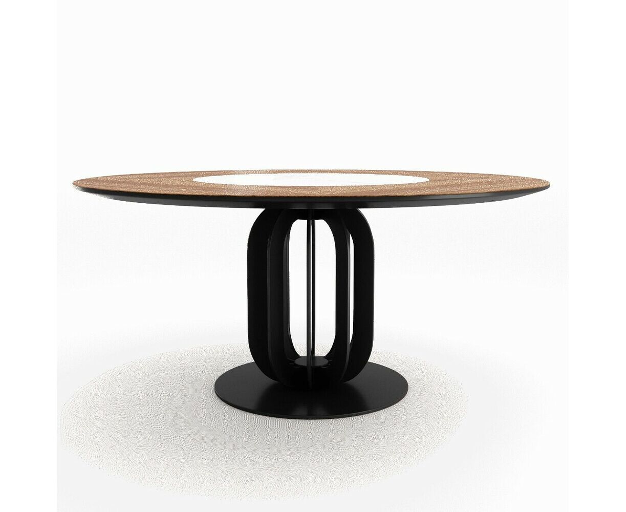 Нераскладывающаяся столешница — изготовлена из МДФ толщиной 40 мм с натуральным шпоном 1 мм и вставкой по центру из матовой или глянцевой керамики 6 мм с диаметром круга 80 см, Круглая форма стола делает его подходящим для повседневного использования и обслуживания гостей. Сохо — стильный и практичный выбор для современных интерьеров.