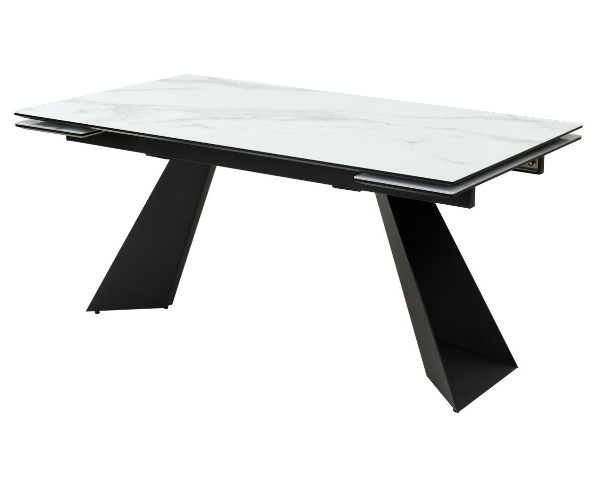 Стол Купер 160 БЕЛЫЙ МРАМОР, черная шагрень, стекло / ЧЕРНЫЙ каркас М-City
