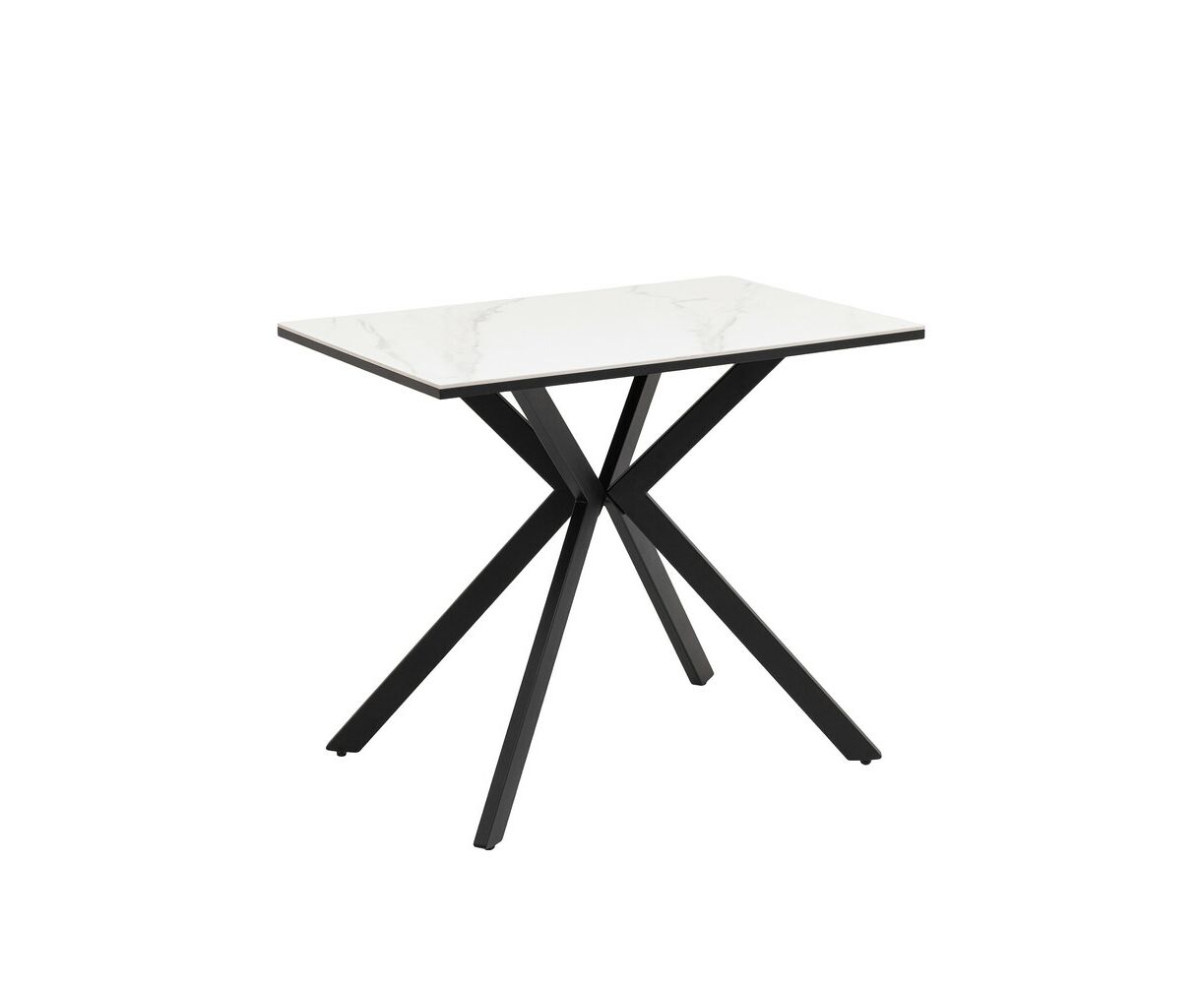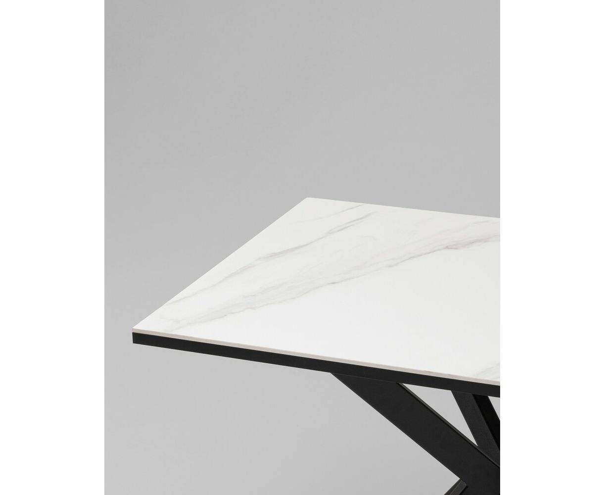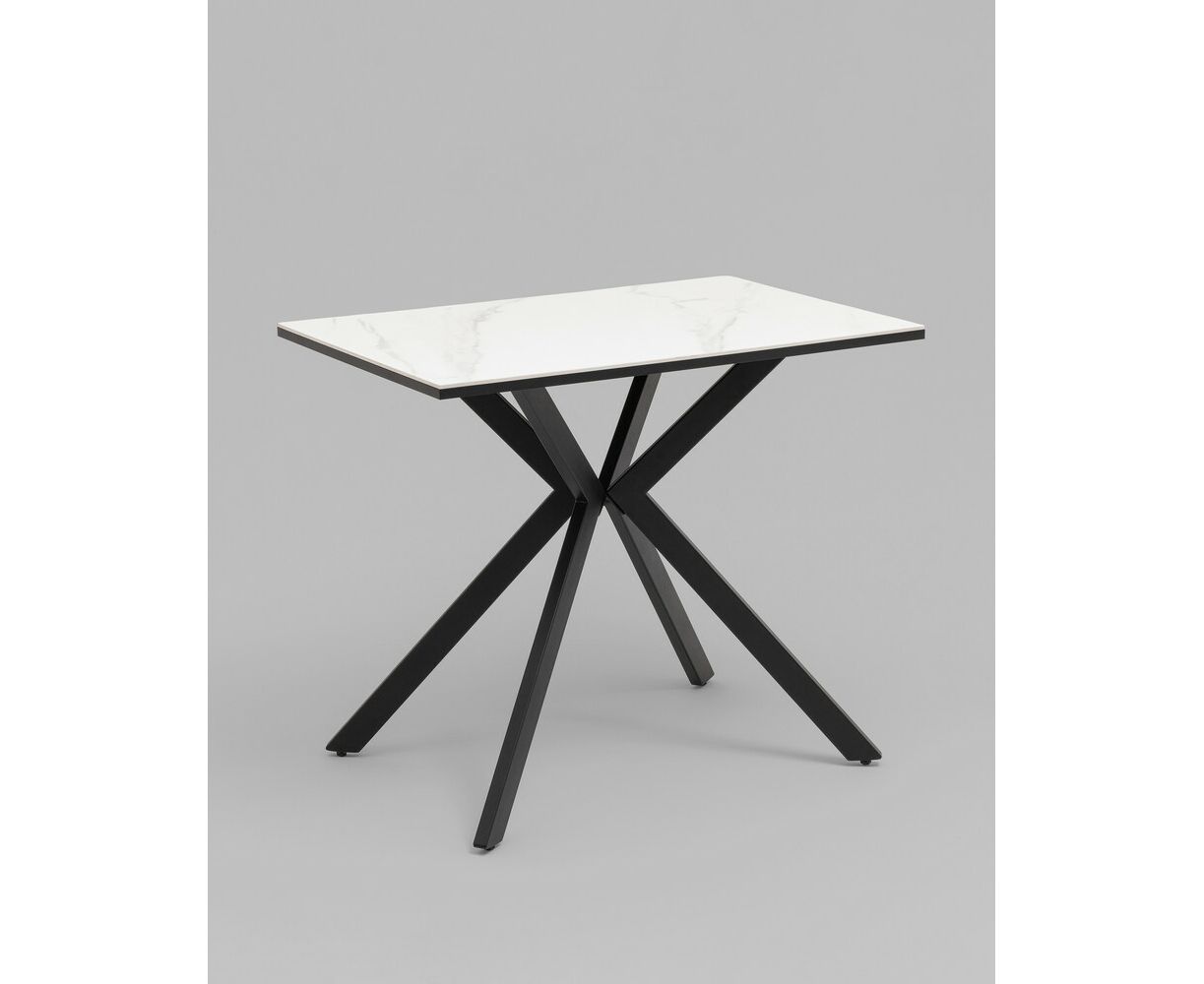 Стол Мармер мини нераскладной 90х60х75 см, столешница SNOW WHITE, подстолье металл черный