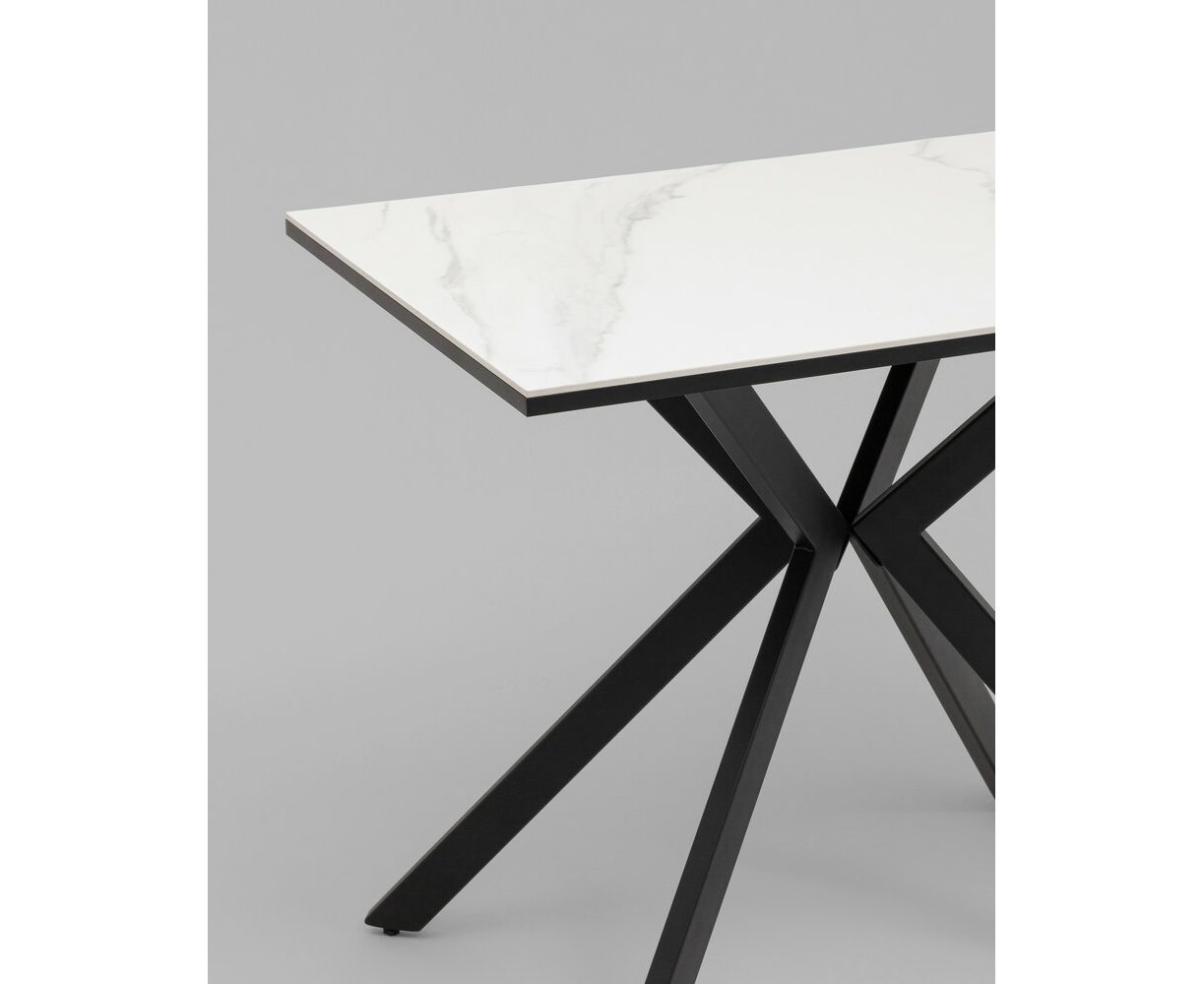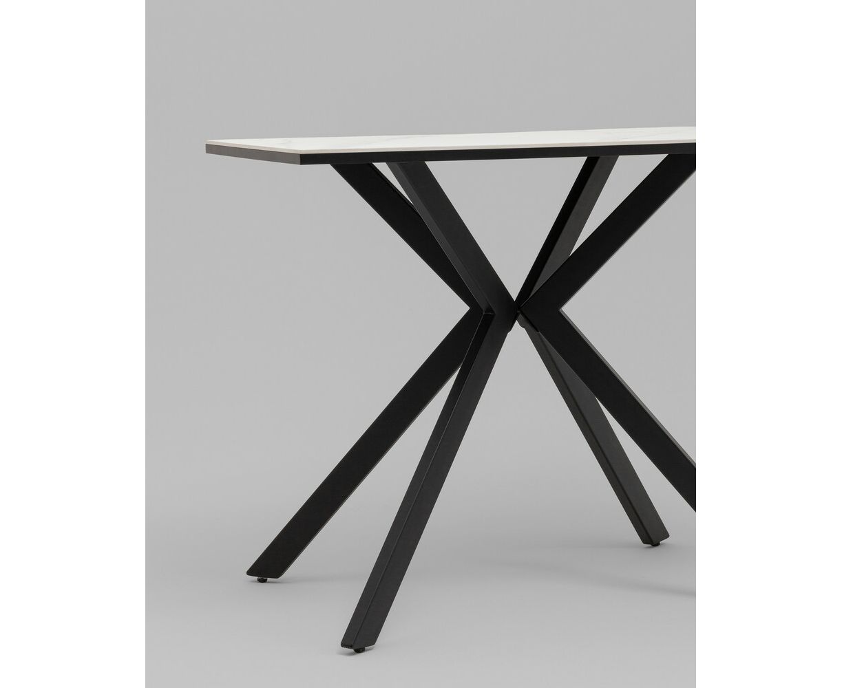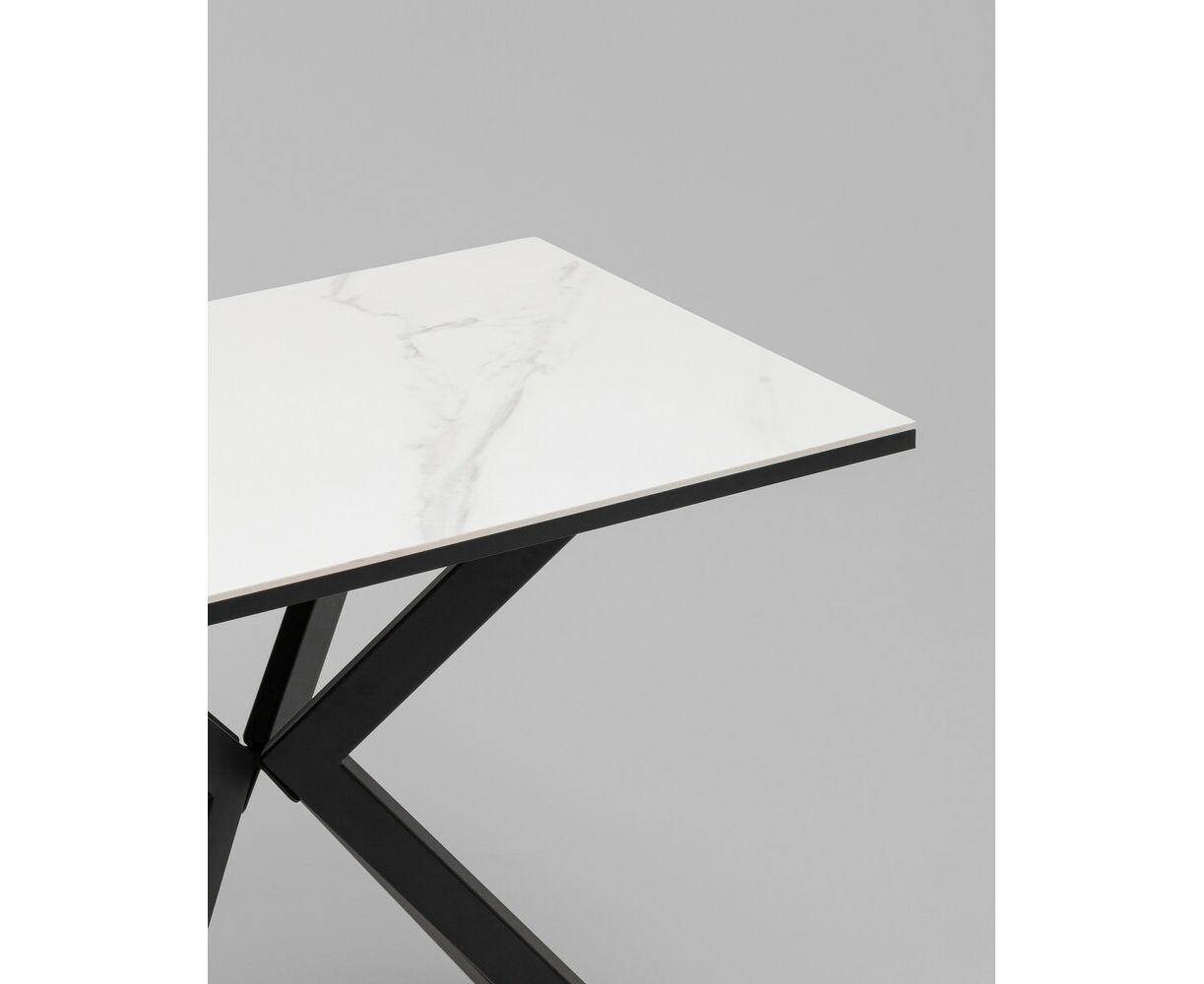 Стол Мармер мини нераскладной 90х60х75 см, столешница SNOW WHITE, подстолье металл черный