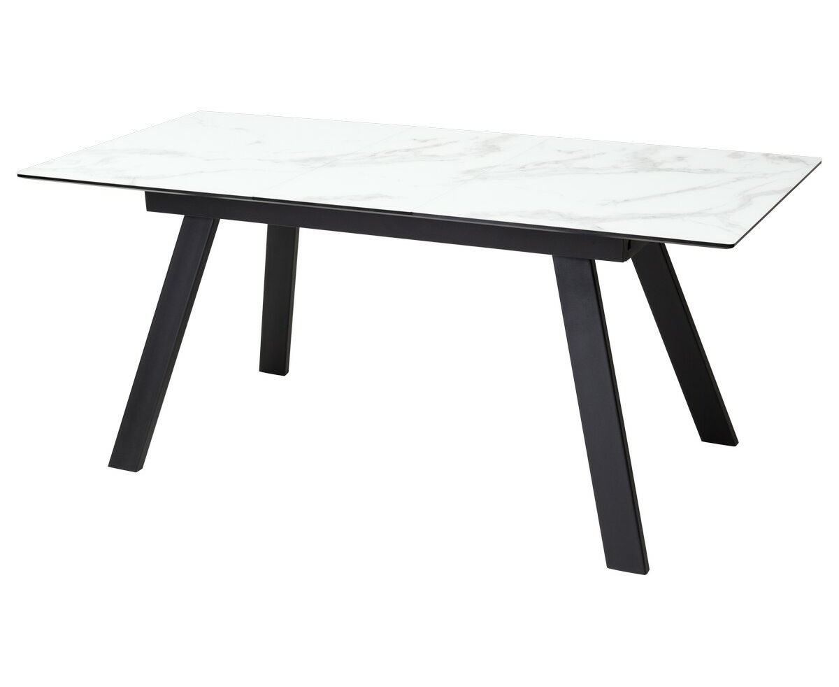 Стол Морис 140 БЕЛЫЙ МРАМОР глянец, стекло / черный, М-City