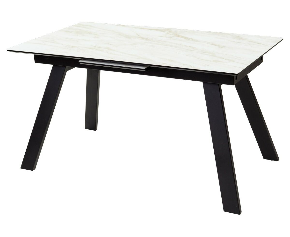 Стол Морис 140 БЕЖЕВЫЙ МРАМОР, стекло/ ЧЕРНЫЙ М-City